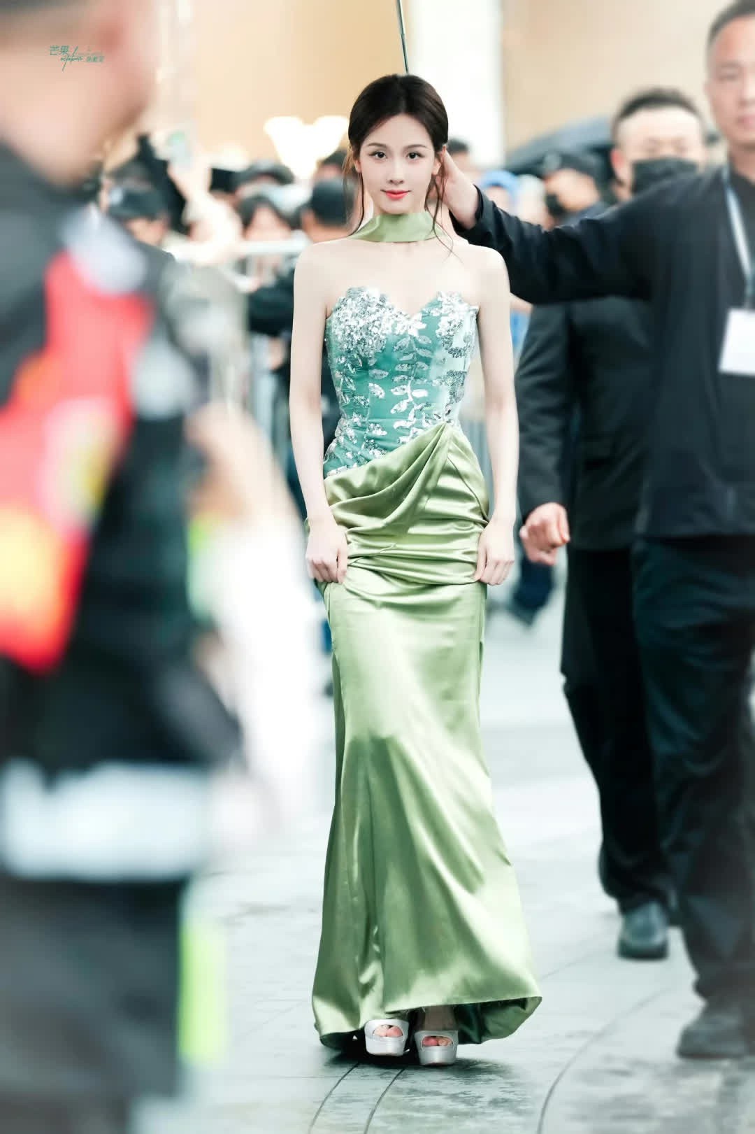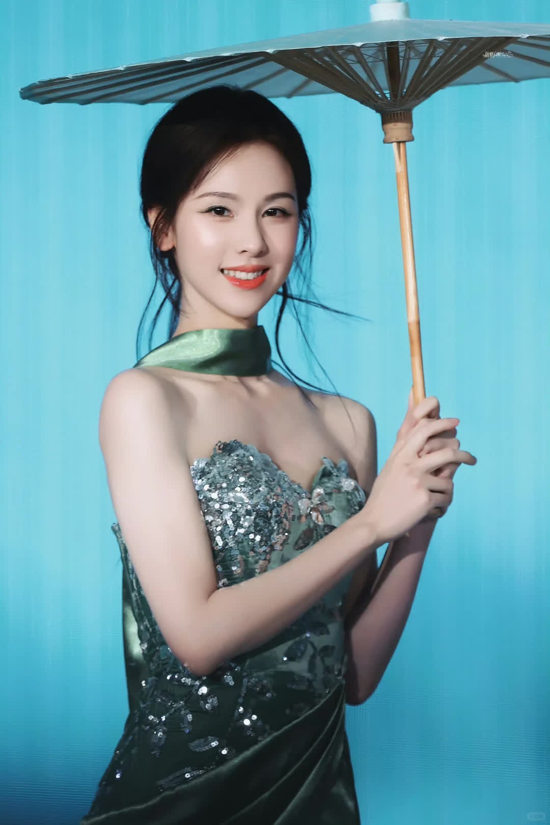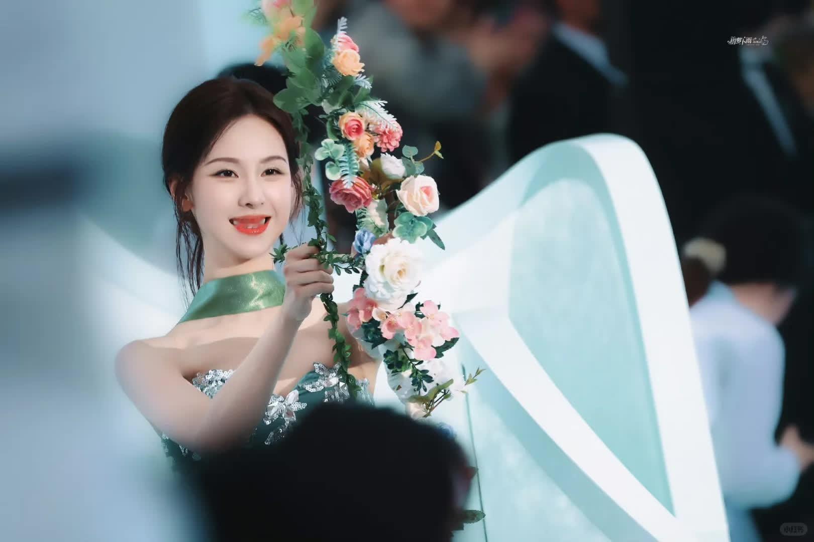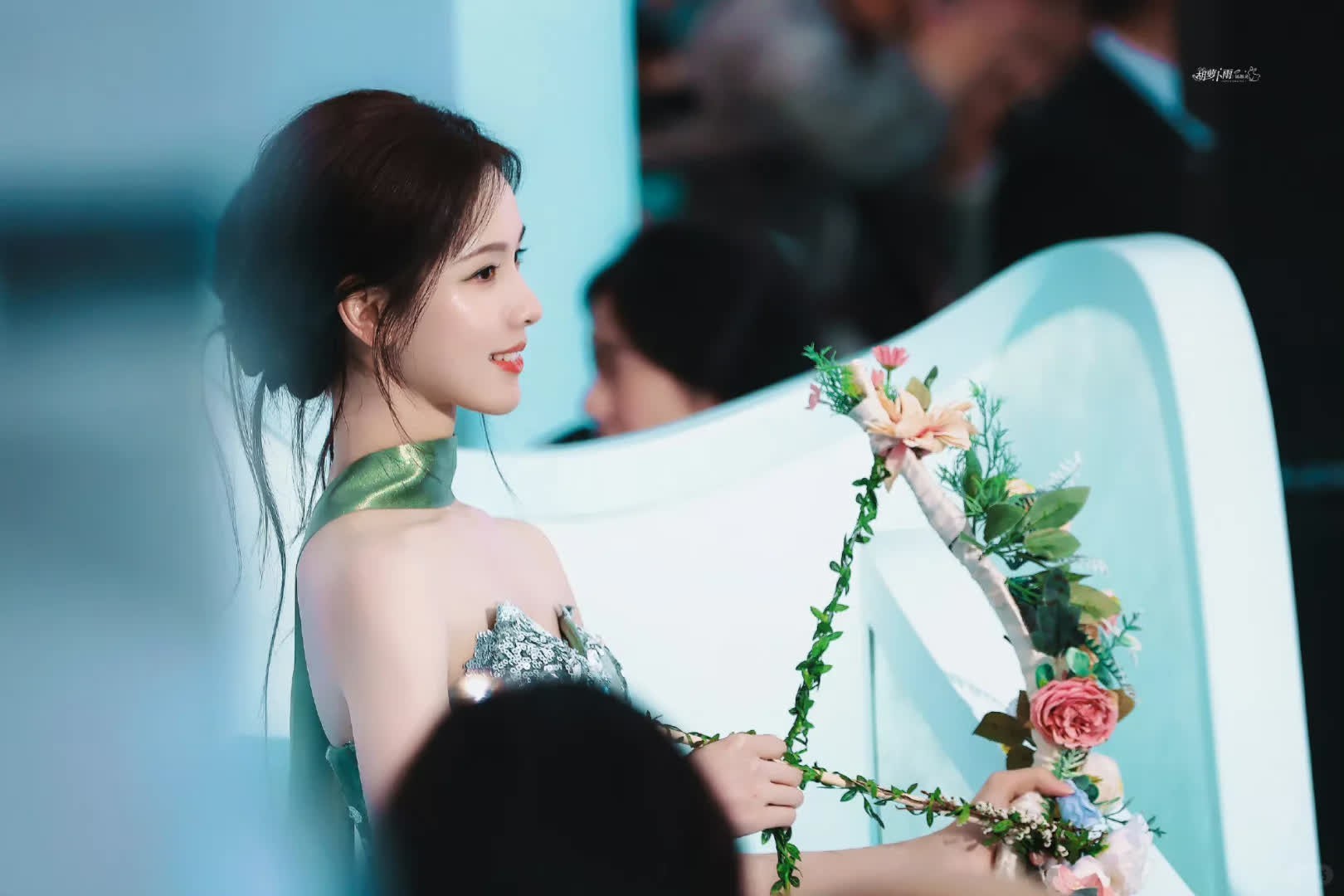 陈都灵今日活动穿搭,上身绿色新中式礼服,妆造和礼服好搭,好美好有气质,她和绿色系就是绝配💚