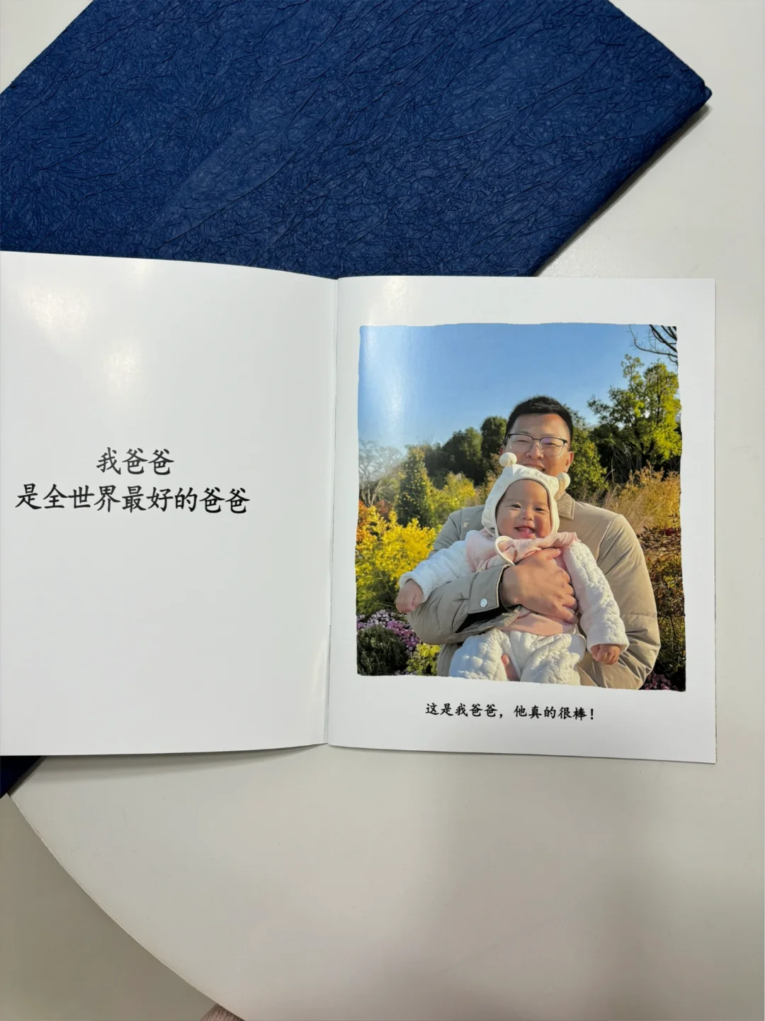 贝果爸爸是金牛座,对自己很抠;忙工作,对生活也没有太多要求。以前我还会给他买些有品质的礼物,现在生活压力提升仪式感跟着降级,有时候也因为疲惫自动掠过一些节日。 成为爸爸以后的第一个生日,还是想为他留下点什么。试探过他的想法,他说:不用过也行,随便点两个出去吃一顿。 “随便”是最难满足的,我在翻了很久看到这个很棒的想法,经济又有意义。可以一直保存留念,以后给贝果当绘本看。 基于网上的方案我进行了优化,这个绘本创作是有背景的,毕竟是一份生日礼物,我还是选择麻烦点把整个人物替换(⚠️不要露出这件黄色的衣服)。删减了几页与贝果爸爸调性不搭的,增加了四页爸爸陪伴下的成长记录。收到礼物后,贝果爸爸超级喜欢,反复阅读,说这是收到最好的礼物~[得意R][得意R] ✅全流程分享 ✔️排版:购买一份高清的《我爸爸》PDF电子稿💰 1R,里面的图片截图后用美图秀秀抠图排版即可 ✔️装订方式:大部分用的是蝴蝶金装,我了解下来装订+印刷需要将近二百,于是我选择了比较具有性价比的‼️骑马订(骑马订页数需要时4的倍数,其他的是2的倍数) ✔️尺寸:250x200mm(比A4稍微小一点点) ✔️纸张:铜版纸,封面300g,内页200g ✔️时间周期:印刷1天+快递1天 ✔️包装:买了克莱因蓝石纹肌理纸+丝带简单包装 ✔️总花费:💰电子稿1R+印刷40R+包装6R 还有彩蛋!没想到生日当天刚好是家庭出游日,贝果爸爸授意低调行事,但是我还是请堂姐帮忙定了蛋糕,喜提家族一起为他庆生,真是被他赚到了!
