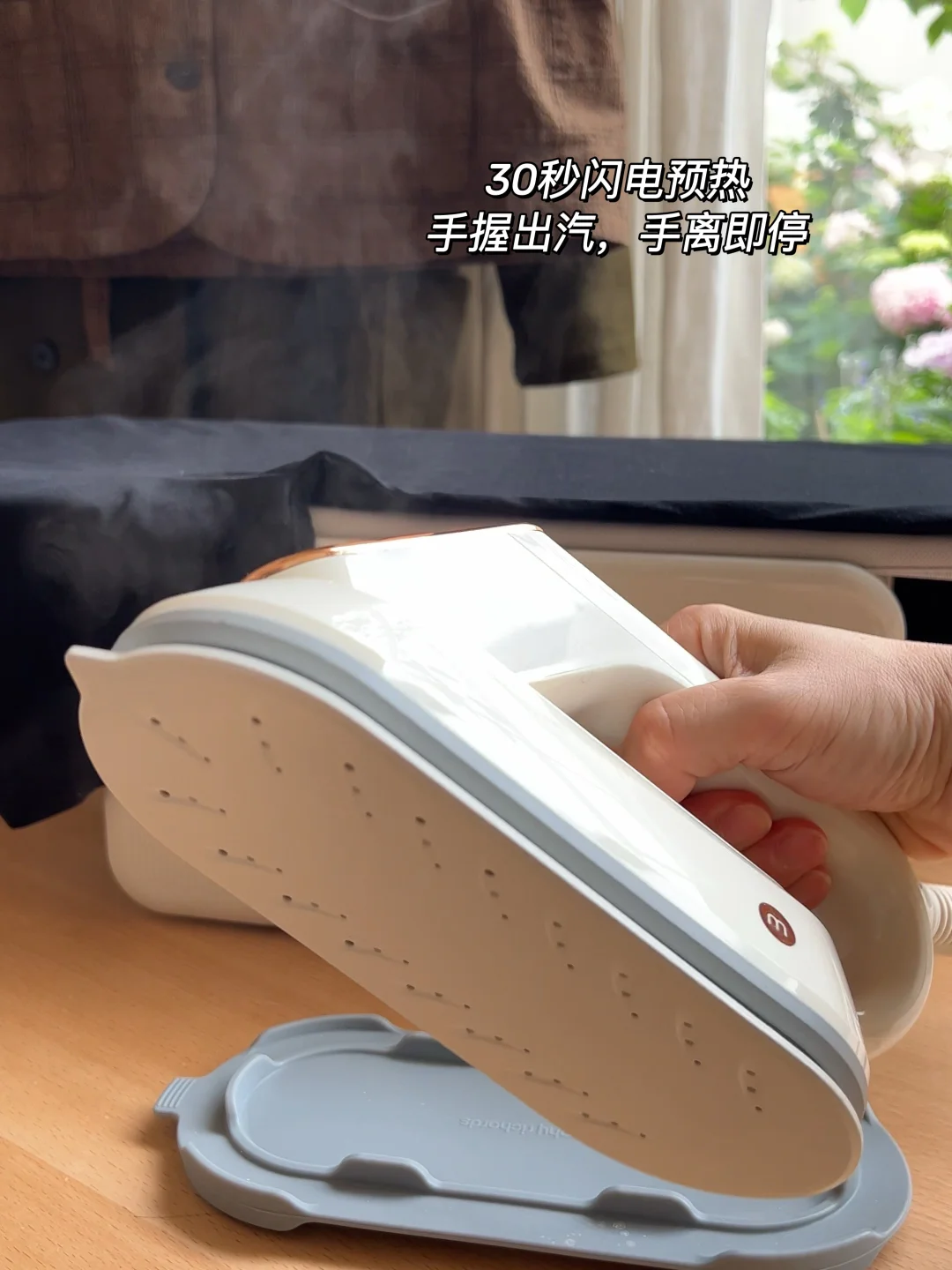 👉熨斗手柄能智能感应启停蒸汽!手握就自动出蒸汽,松手就自动停,完全不用担心忘关开关烫坏衣服