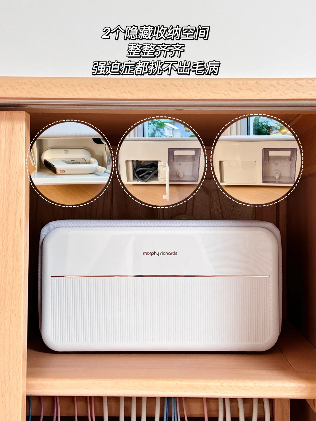 而且它居然自带两个隐藏收纳暗格,熨斗、电线、水管等都能收进去,收纳强迫症都要夸它!