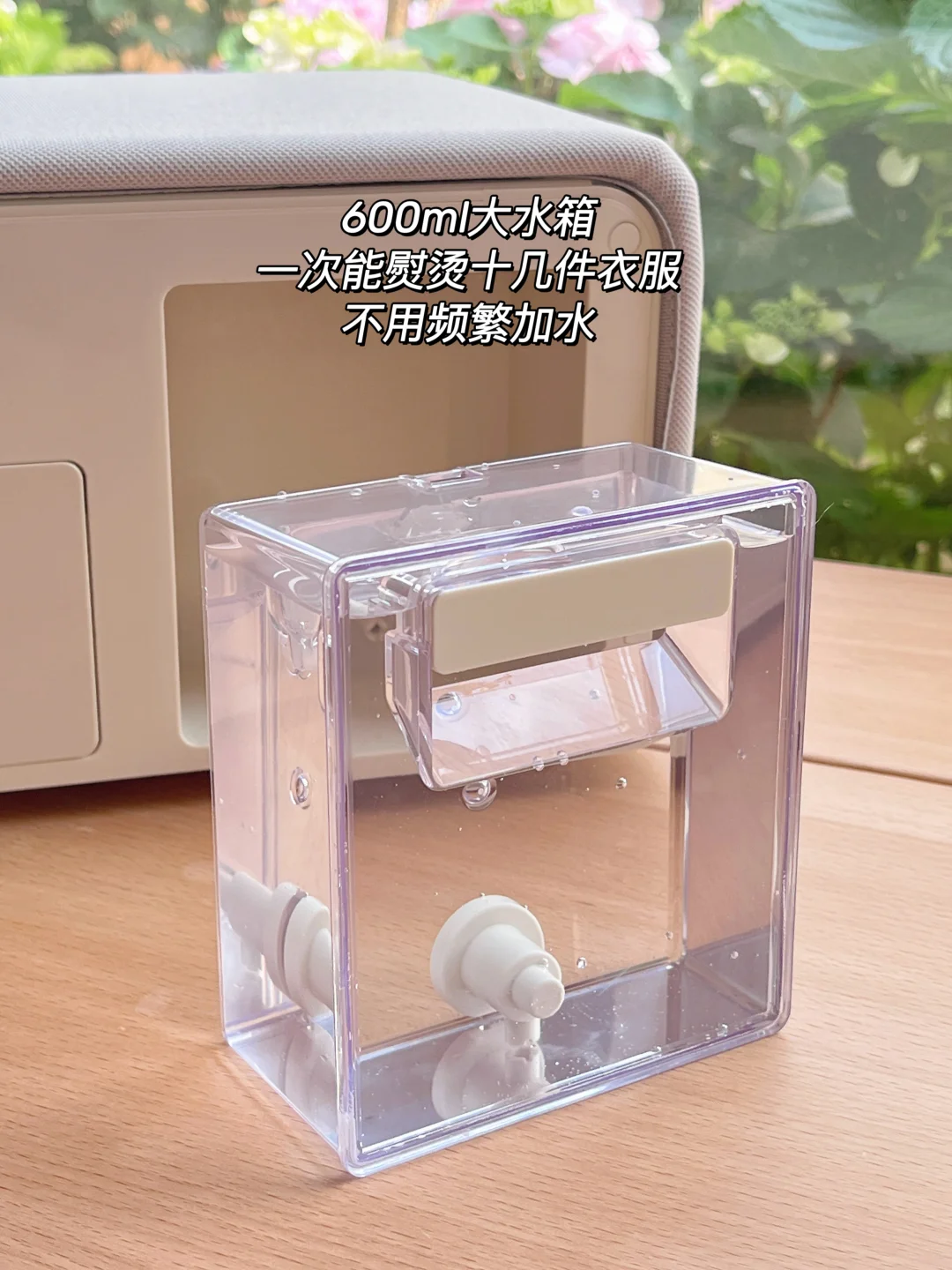 600ml隐藏式水箱一次能熨好十几件衣服,不用频繁加水。