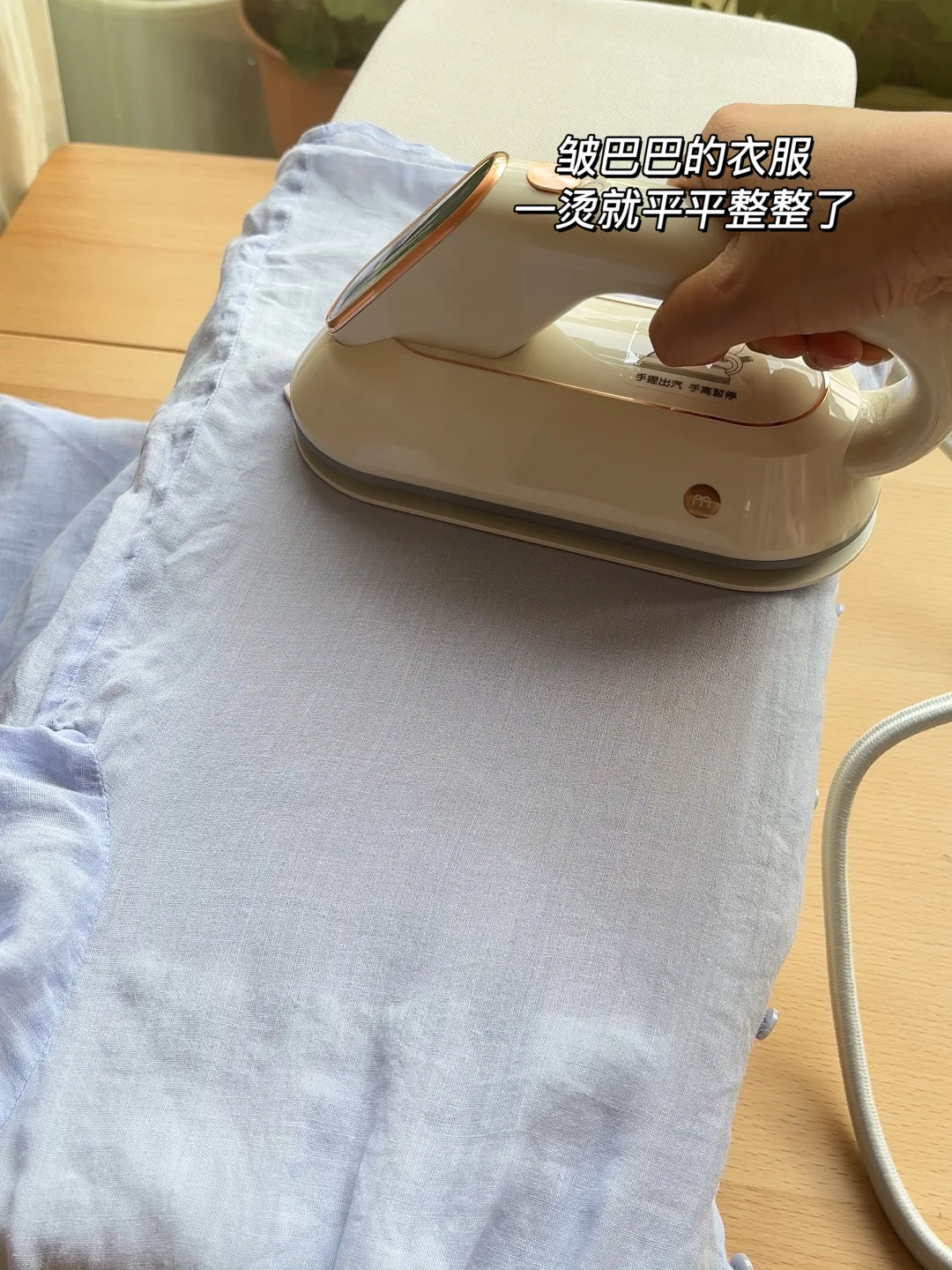 而且再次拿起也不用重复预热,直接接着熨,嘎嘎快!赶时间出门一点也不耽误!