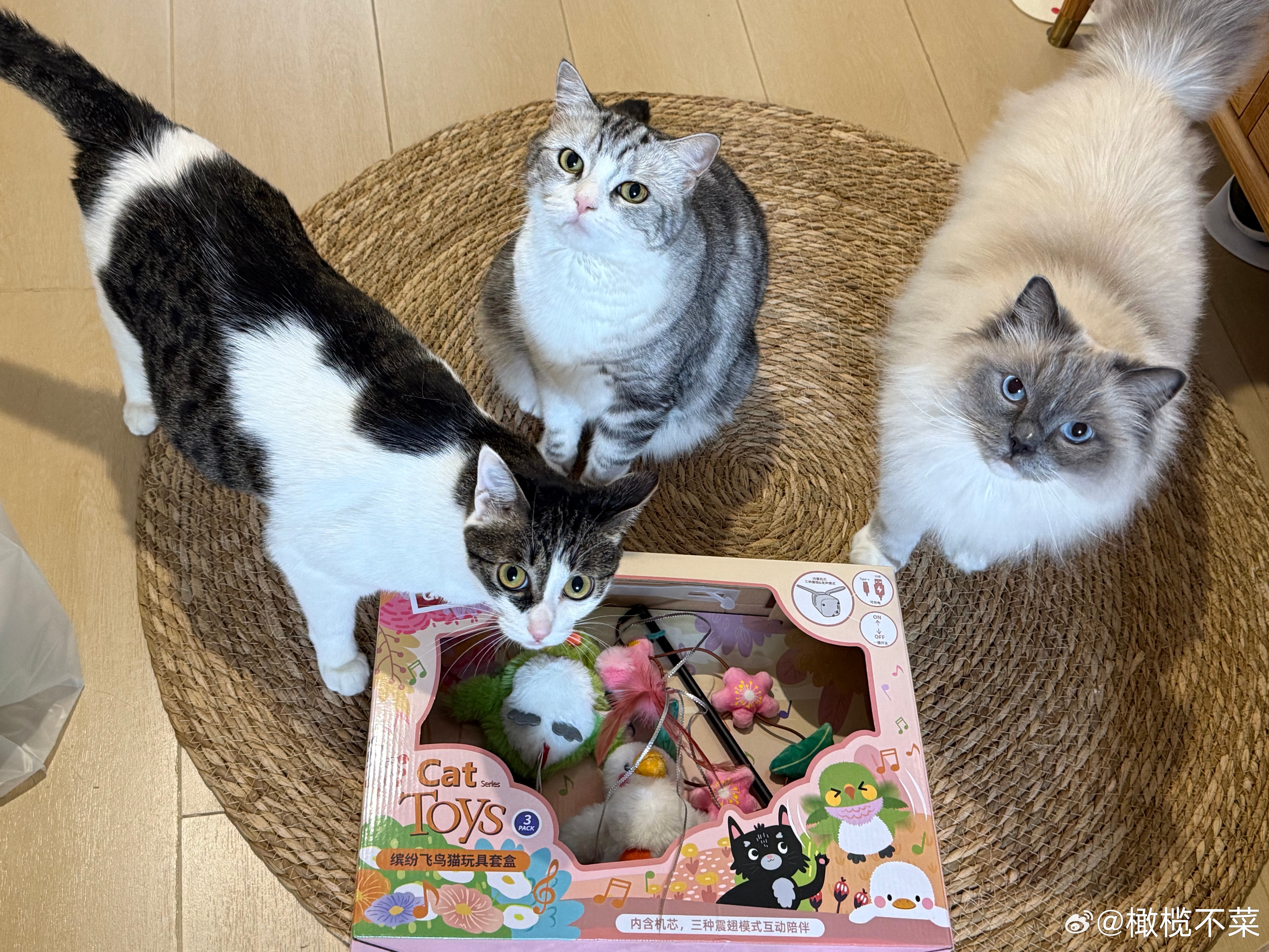 山姆卖的这个玩具套装[怒]四只猫没有一只玩!真的很喜欢这种哄猫开心但是全白费的感