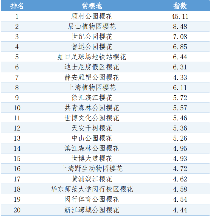 1.上海最佳赏樱地TOP20