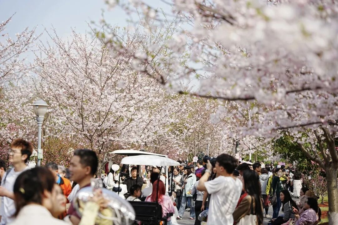 第三.“以花为媒”文旅联动。如今,“上海樱花节”已从过去观赏踏青为主,转为休闲、体验和消费并重,各区、镇和街道围绕区域内的赏樱地,组织开展了各种丰富多彩的联动、互动活动,如虹口区以“朝花夕拾、樱爱满城”为主题,串联街区与商圈,推出“虹小象”樱花季主题冰淇淋,带动商业消费;辰山植物园设“松江国潮市集”,展售松江特色产品、国潮文创和手工艺品;世纪公园推出“好市发声·集食乐行——樱为有你”樱花集市,并搭配国风与音乐活动;普陀区依托“千树樱花季”,开设春日市集,涵盖植艺萌宠物、轻食餐品等30多家品牌。樱花节主会场宝山区更是以“海上樱缘,繁花似锦”为主题,开展系列促消费活动。