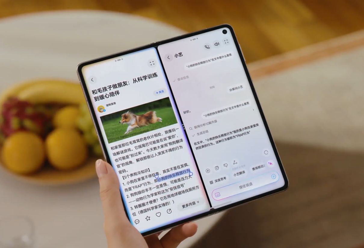 值得一提的是,除了小品《你准喜欢》中周铁男用大屏刷视频,华为Mate X7的大屏还结合AI功能进行了深度优化。无论是百科问答、文生图、文档摘要,还是语音购物,小艺都能以分屏形式并行呈现:一侧保留指令或原文,另一侧实时显示结果或操作面板,无需跳转App。比如一句“再买一单马年糖果礼盒”,购物流程直接在侧边展开,信息清晰、操作连贯。这种“不会被打断”的AI交互体验,让大屏真正成为AI效率的放大器。