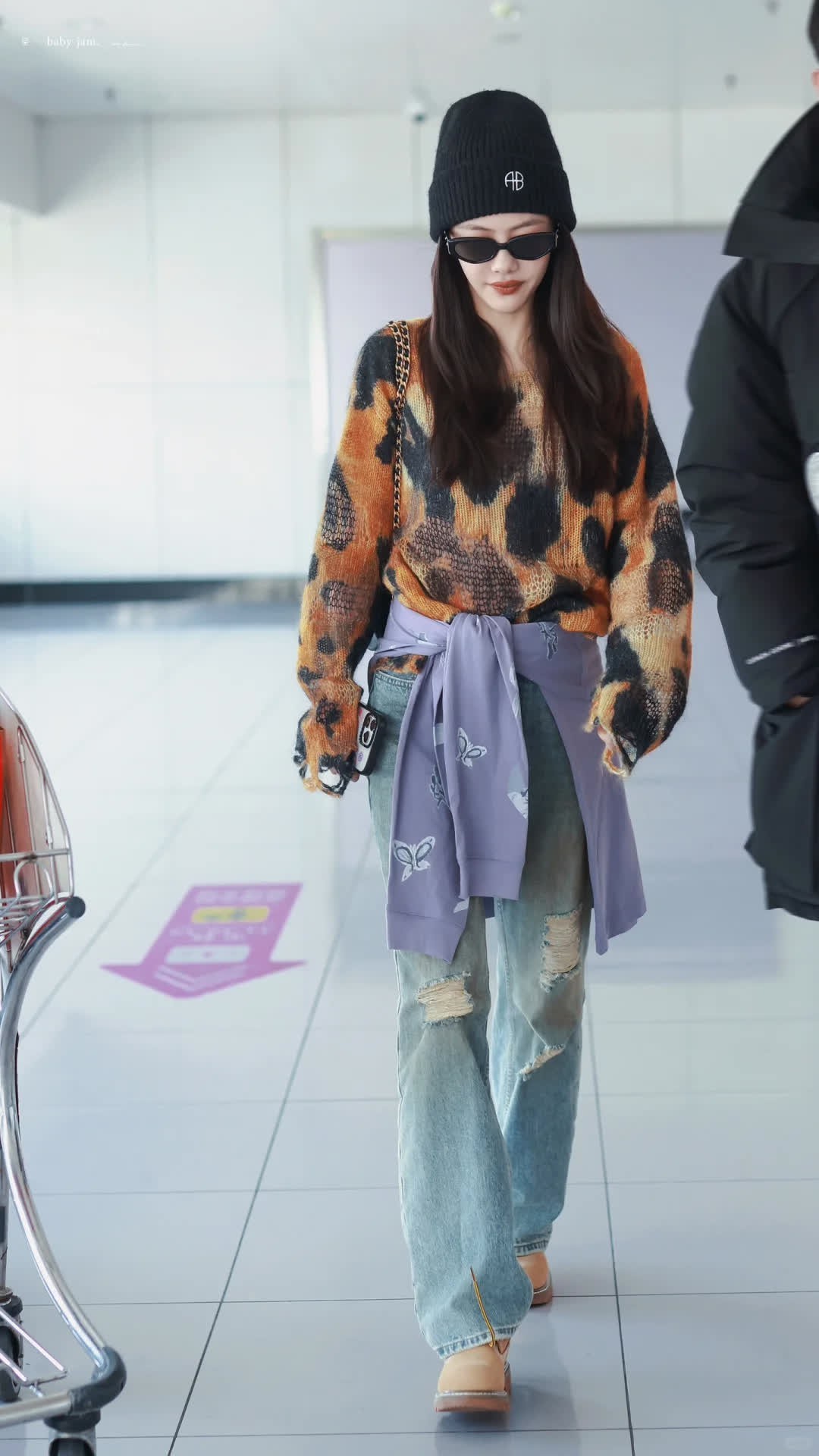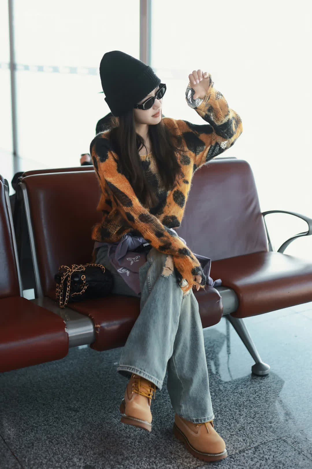 蔡文静今日最新路透,一身的破洞穿搭又酷又美~