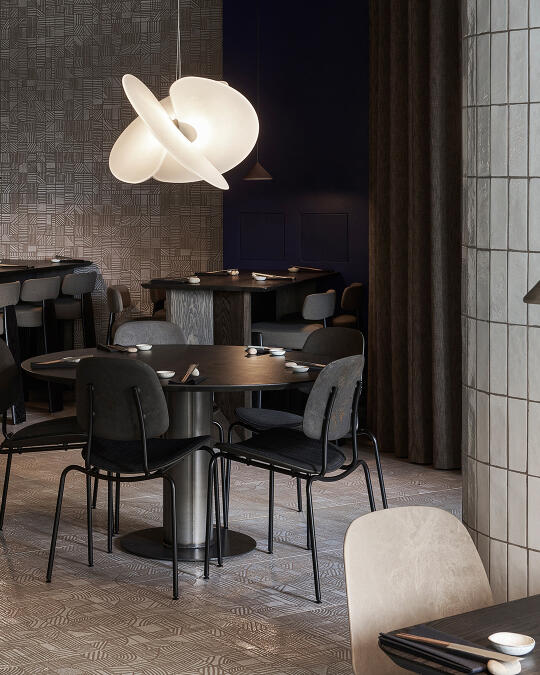 走进这家日式餐厅,仿佛置身于一场光与材质交织的静谧之境。由 打造的空间,以釉面瓷砖、海草板、环保复合材质构建出层次丰富的触感世界,低饱和的土色系调和出一种温柔、安静又带点俏皮的氛围。