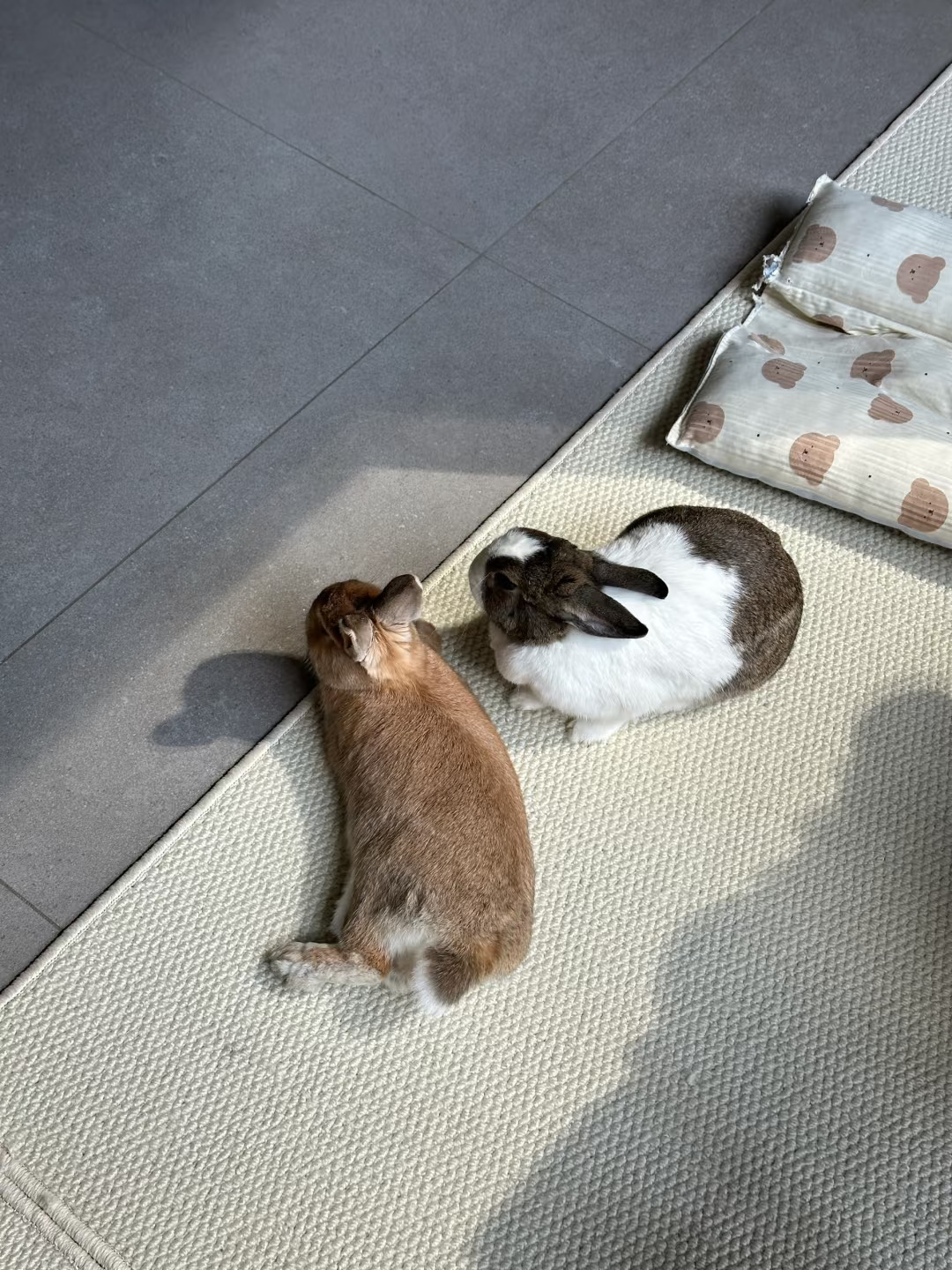 早上两只跳上床从我枕头边经过,是散发草香味的兔兔耶