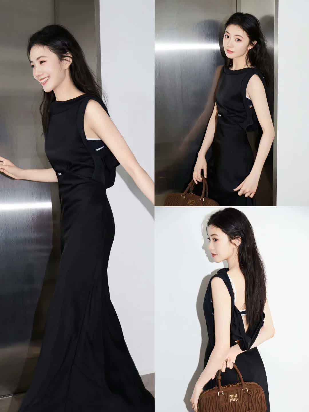 刘浩存是真美女,一身黑色连衣裙搭配披肩长发,随性又好看,松弛感满满~
