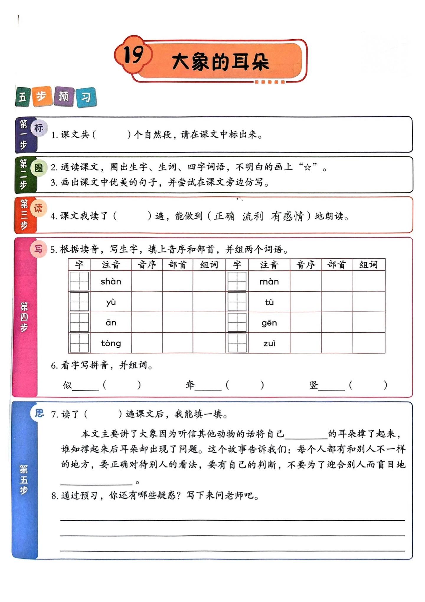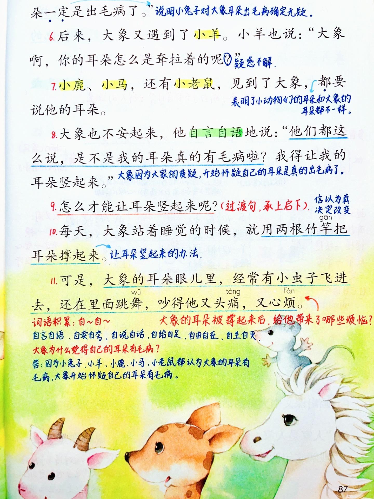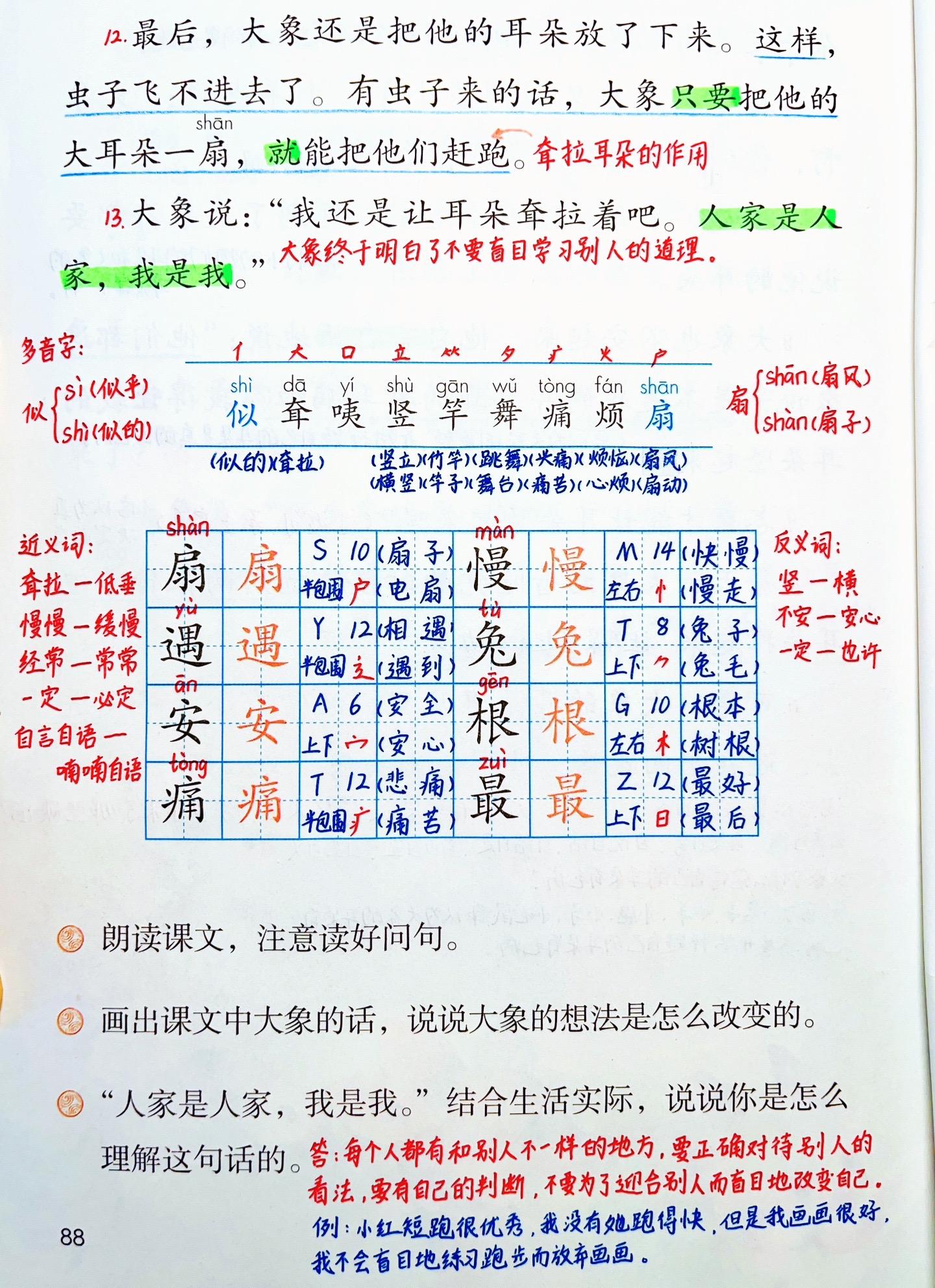 二年级下册《大象的耳朵》笔记。 你是怎样理解大象说的话的? 大象明白了...