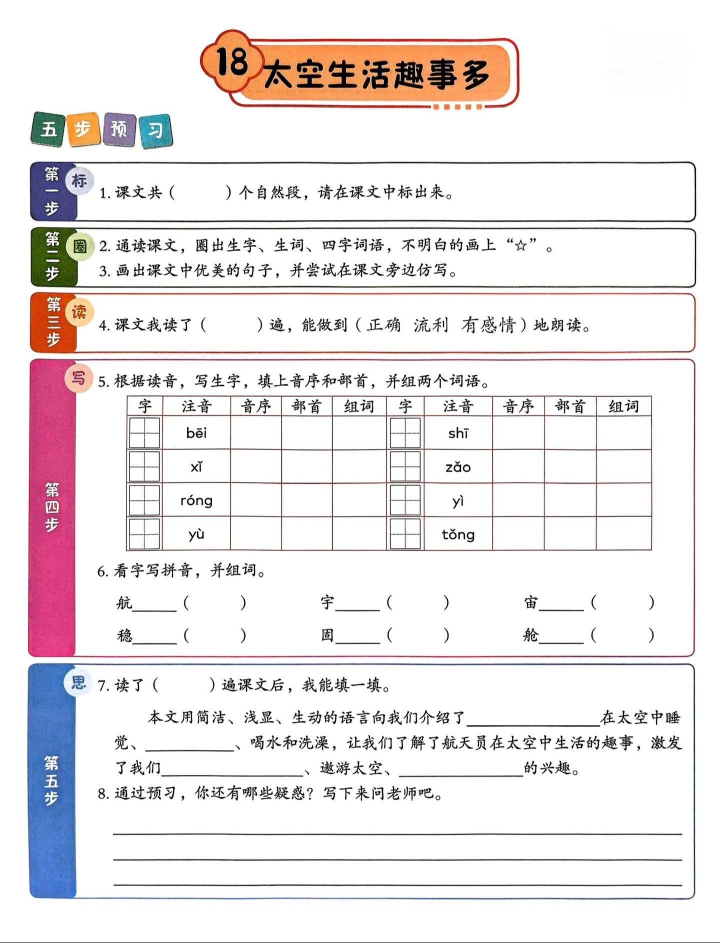 二年级下册《太空生活趣事多》笔记。文中共写了四件趣事。一是睡觉的趣事...