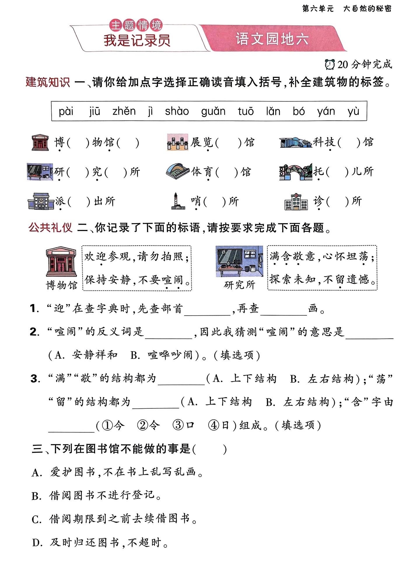 二年级下册《语文园地六》笔记。 博物馆:搜集、保管、研究、陈列、展览有...