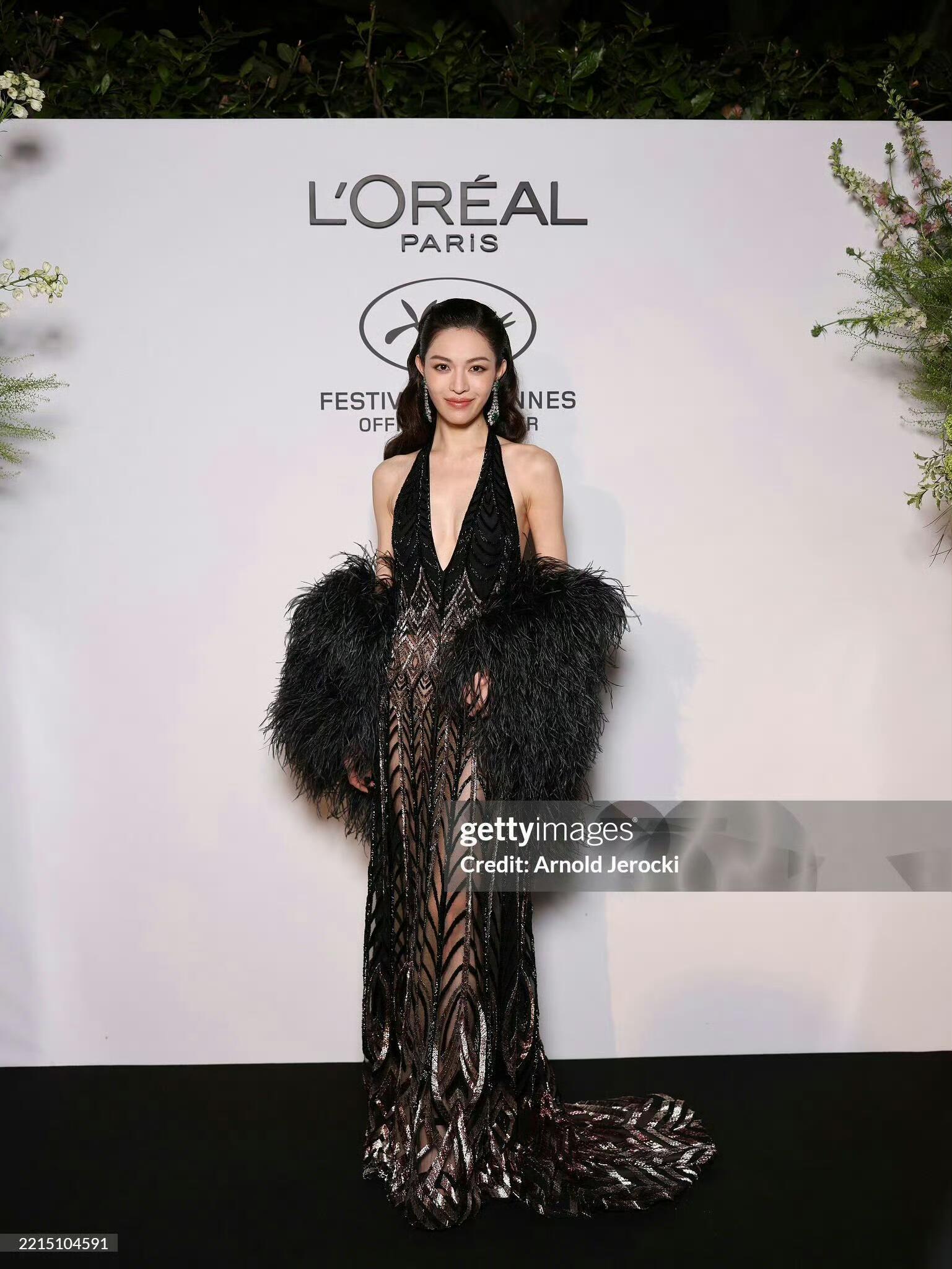 钟楚曦黑色镂空羽毛裙 第78届戛纳电影节盛大开启,钟楚曦一袭黑色镂空羽毛裙踏上红毯。裙子出自Elie Saab之手,深V领设计巧妙勾勒出她的身材曲线,展现女性柔美与力量。黑色镂空设计似暗夜中若隐若现的秘密,增添独特韵味,而羽毛披肩更是赋予其梦幻般的华丽感。钟楚曦凭借此造型,再次在国际时尚舞台证明自己的时尚表现力,成为红毯焦点。唐嫣钟楚曦戛纳晚宴生图戛纳红毯