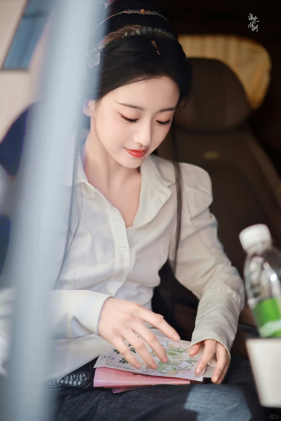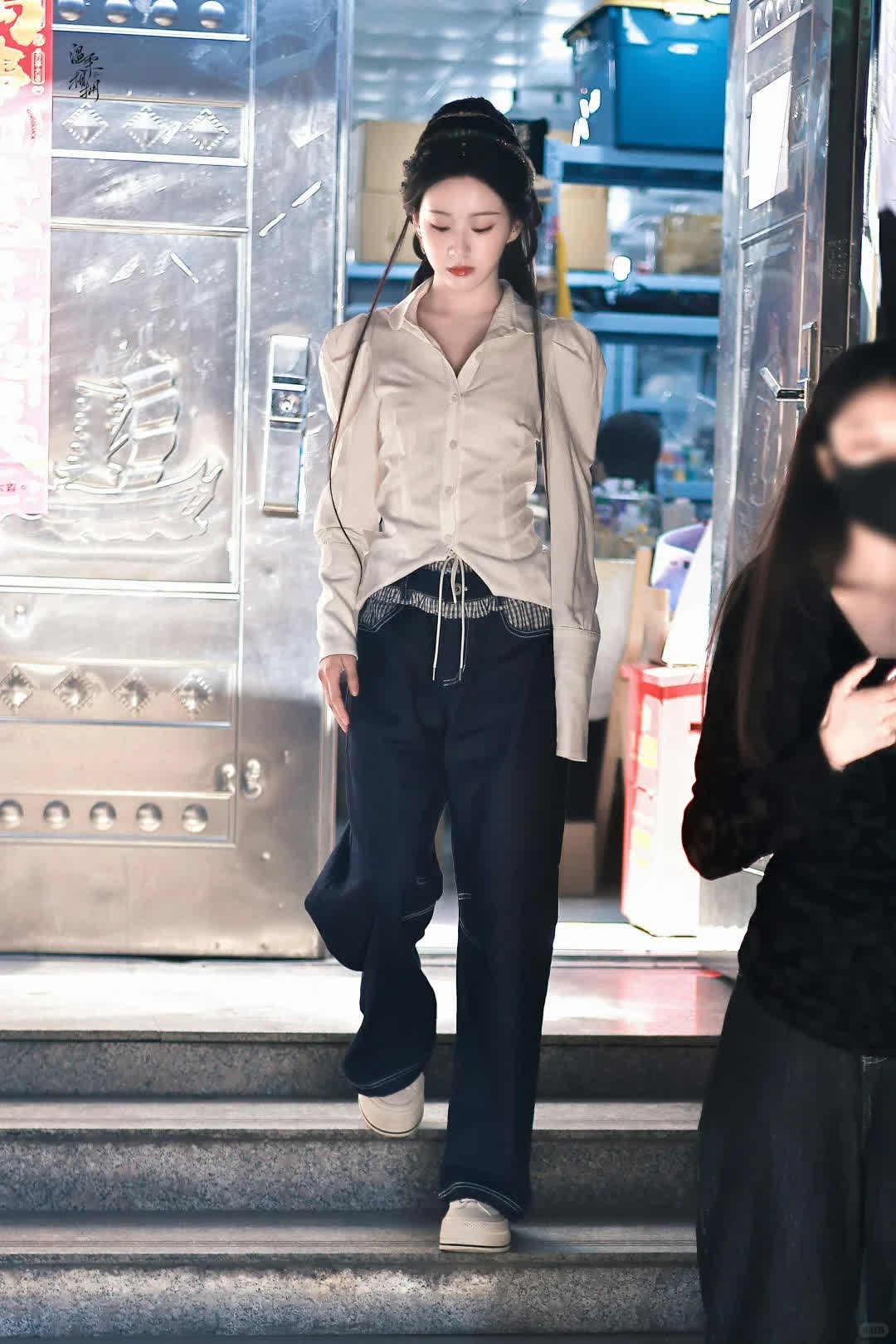 包上恩今日最新路透,白色法式衬衫搭配牛仔阔腿裤,清爽又好看,轻松拿捏松弛感~