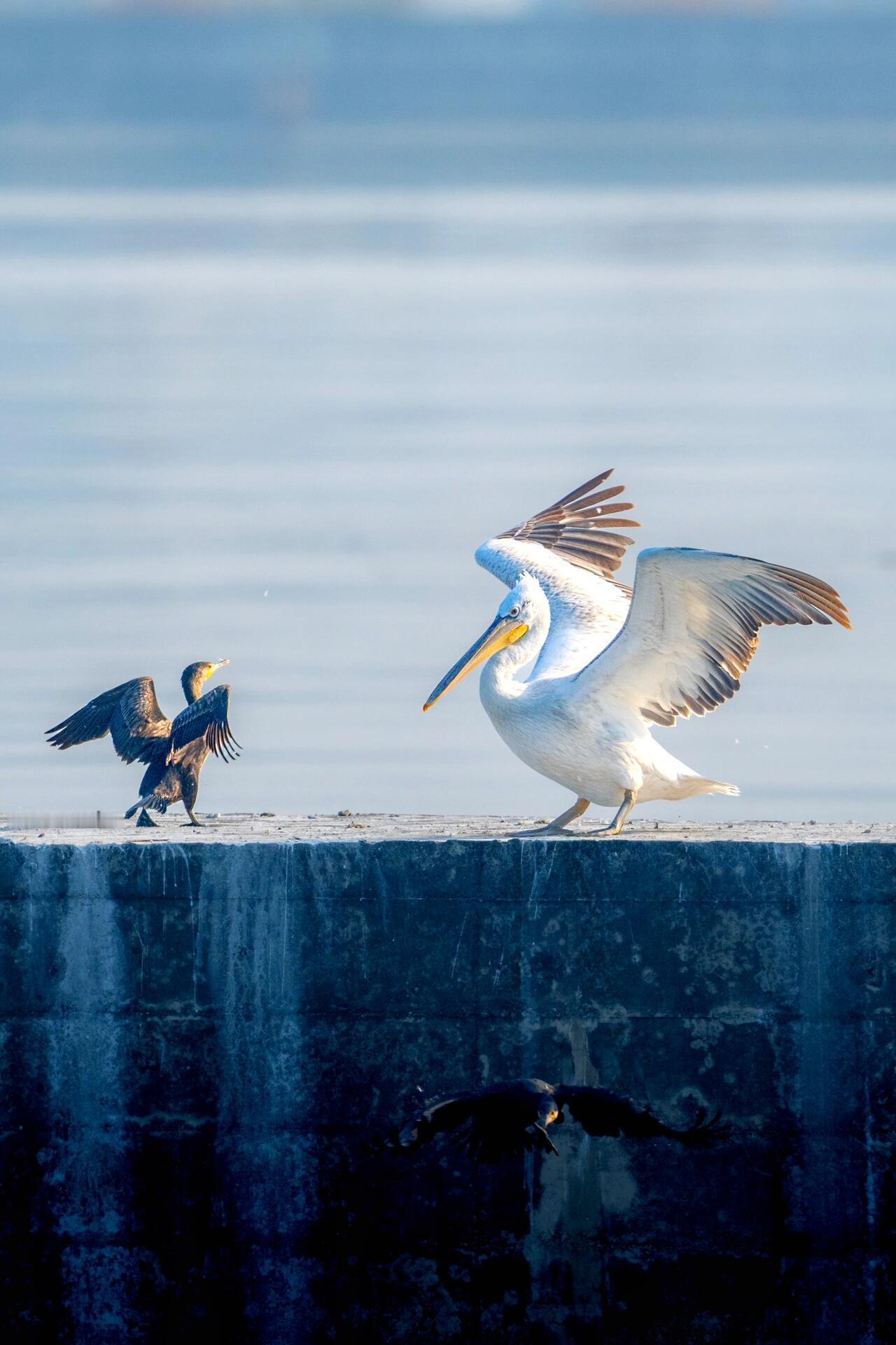 当夕阳染红水面,成群的卷羽鹈鹕收拢翅膀,脖颈优雅地弯成S形,巨大的身影倒映在波光中,仿佛一幅流动的湿地画卷。这些看似笨拙却充满智慧的“湿地巨人”,用独特的生存方式诠释着大自然的奇妙。动物科普