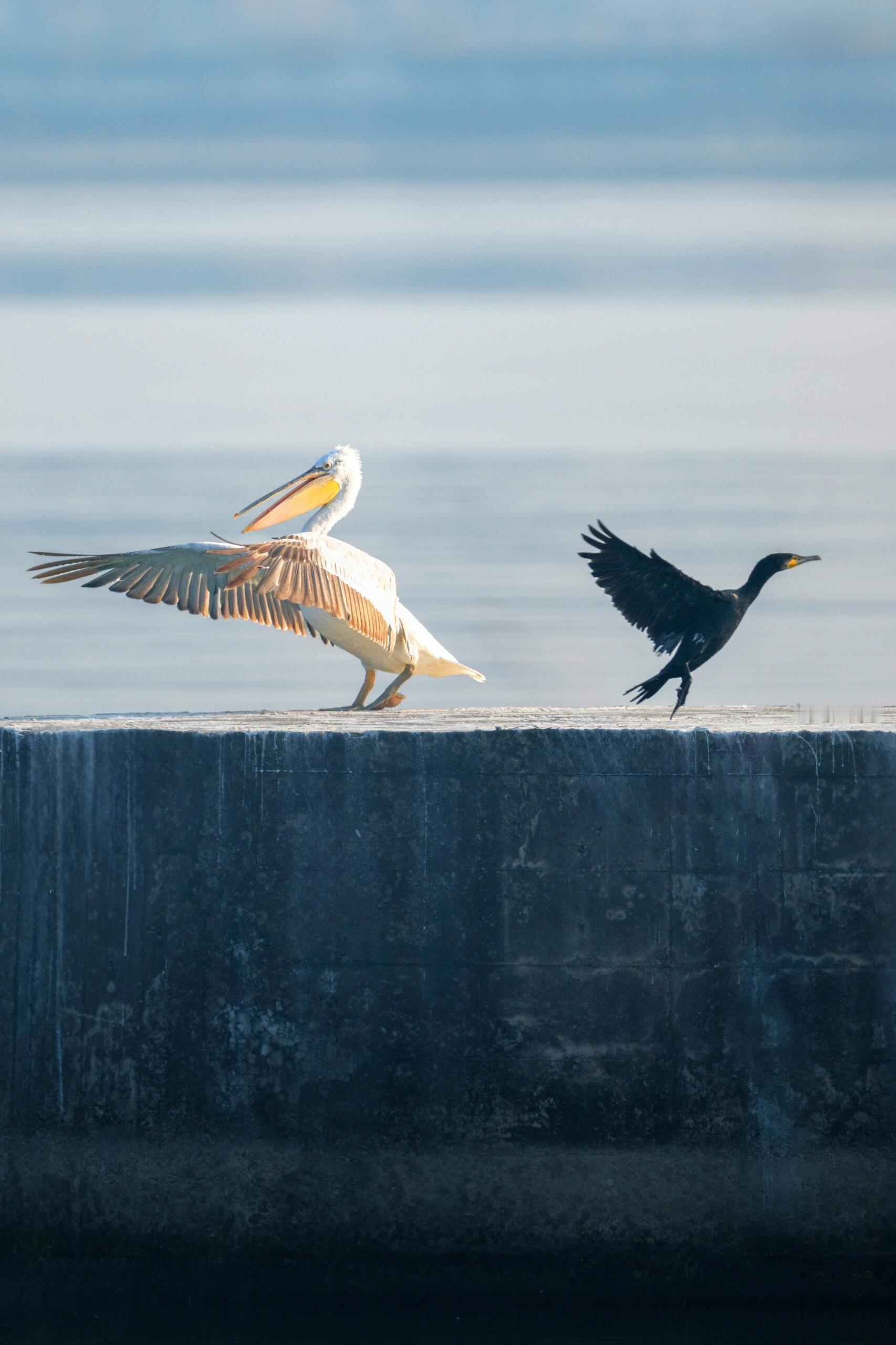 别看卷羽鹈鹕身形庞大,行动起来却相当灵活。它们擅长利用上升气流,巧妙地借助风力在空中滑翔,减少体力消耗。迁徙时,它们会排成整齐的“人”字形或“一”字形队列,相互借力,有时能一口气飞行上千公里。当它们降落在水面时,笨拙又可爱的模样更是让人忍俊不禁:庞大的身躯重重砸向水面,溅起大片水花,像极了不擅长跳水的初学者。