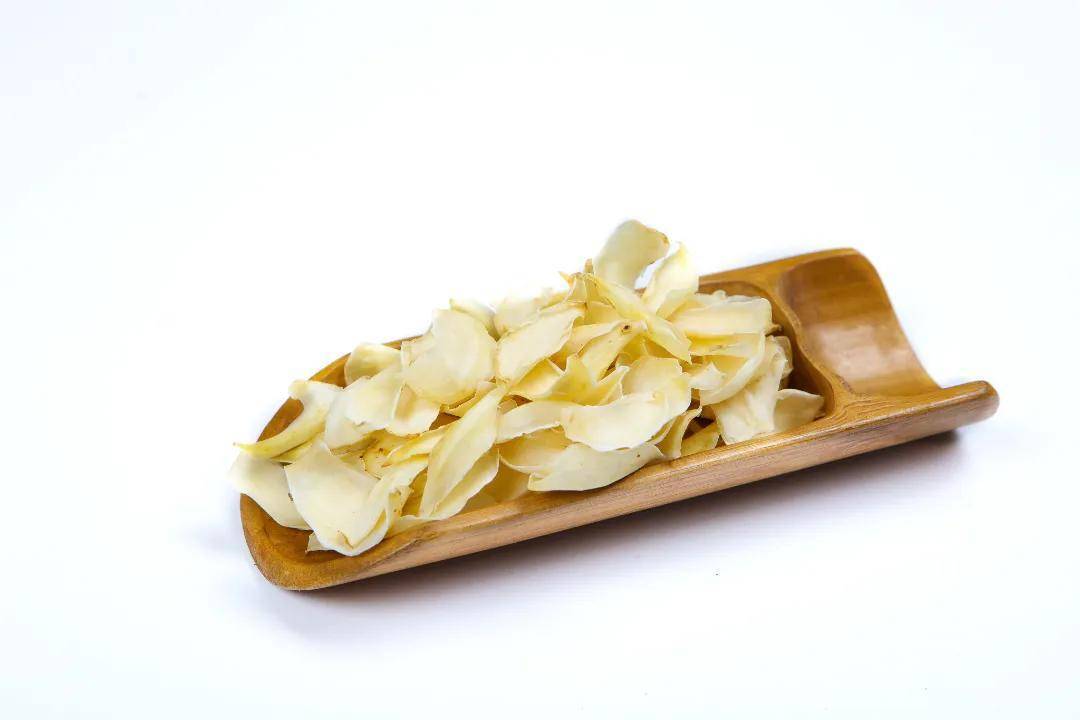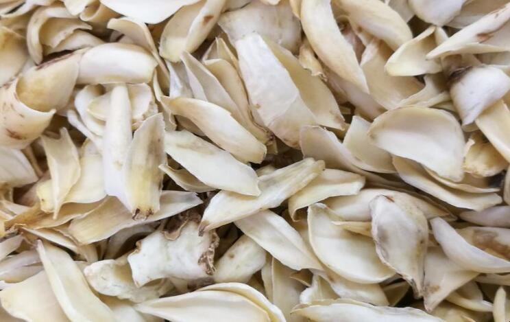 百合最珍贵的部分,当属深埋地下的鳞茎。这些由数十瓣肥厚鳞片层层叠合而成的“宝盒”,形状圆润饱满,宛如一朵倒扣的白莲花。新鲜的百合鳞片洁白如玉,质地脆嫩,轻轻掰开,还能看到晶莹的黏液,那是它储存的营养精华。在中药领域,百合可是当之无愧的“明星药材”。中医认为,百合味甘,性寒,归心、肺经,具有养阴润肺、清心安神的功效。《本草纲目》记载其“润肺止咳,宁心安神”,常被用于调理阴虚燥咳、劳嗽咳血、虚烦惊悸、失眠多梦等症。现代研究发现,百合富含秋水仙碱、百合苷等生物活性成分,不仅具有抗炎、镇咳、祛痰的作用,还能调节神经系统,缓解焦虑与失眠,堪称身心同治的天然良药。