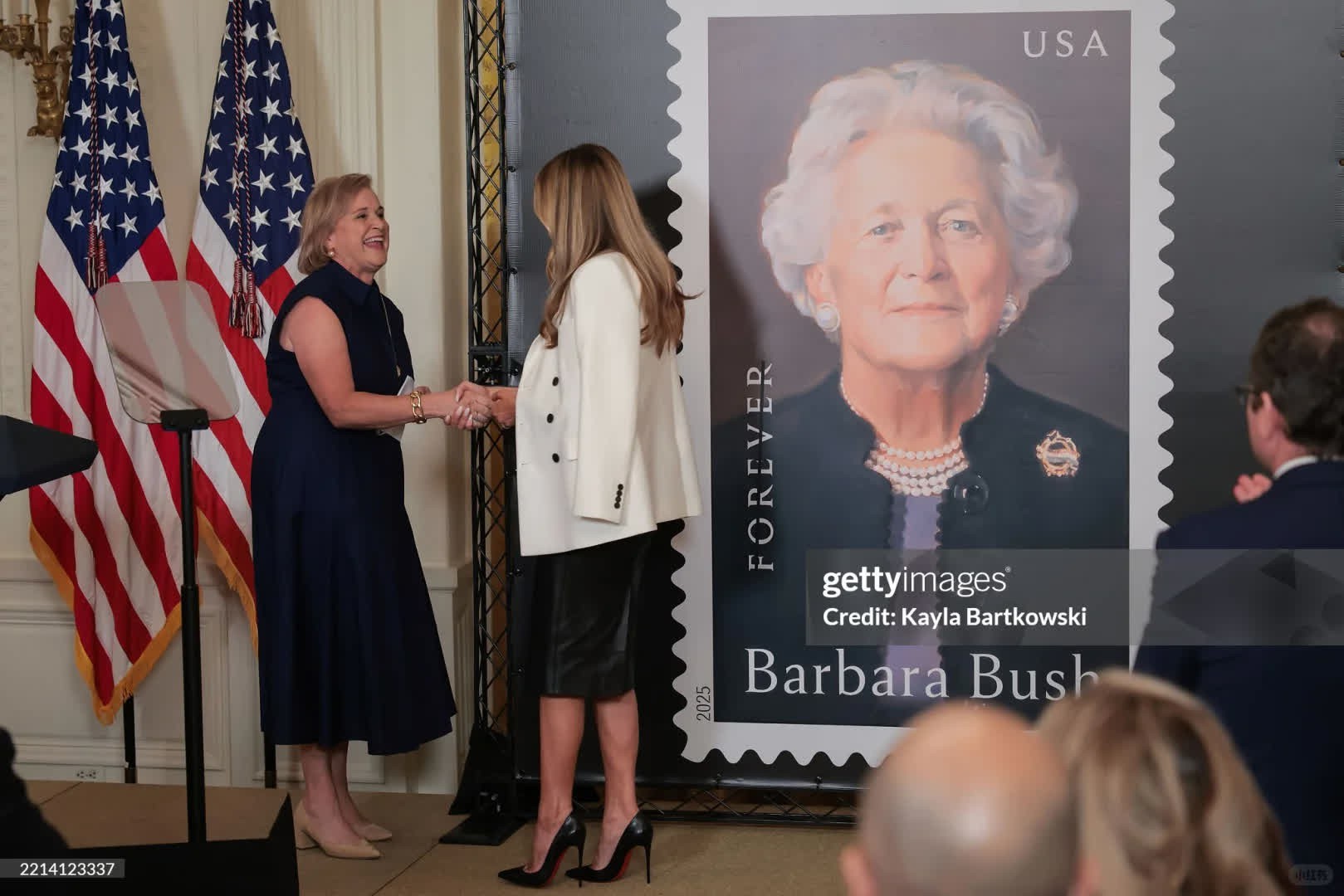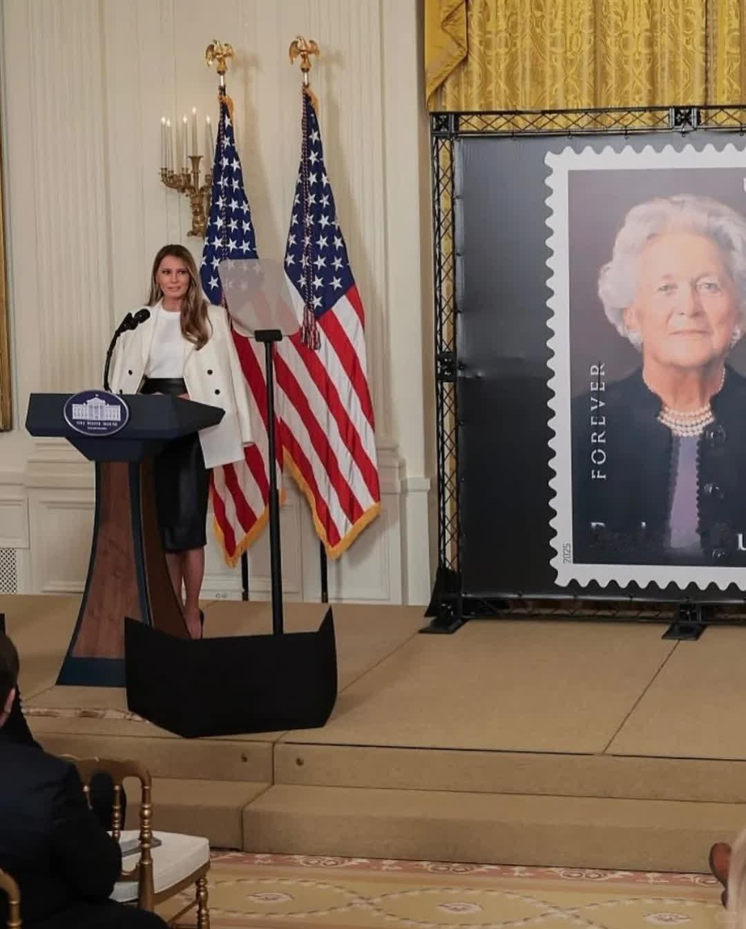 时尚穿搭 |梅拉尼娅最新:为芭芭拉·布什纪念邮票揭幕 为纪念芭芭拉·布什而发行