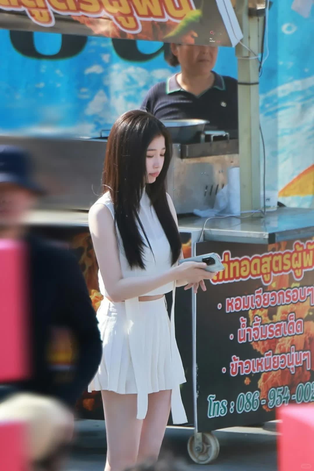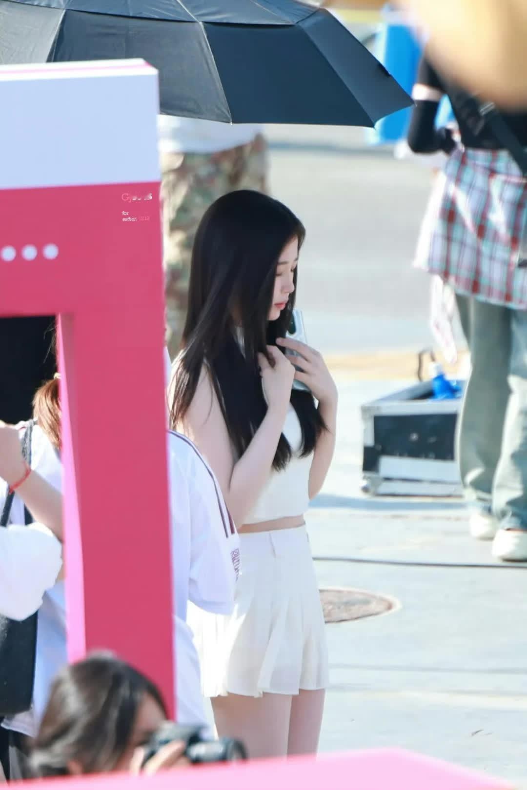 虞书欣今日上班路透,身穿纯色网纱无袖T搭配百褶裙,青春靓丽~