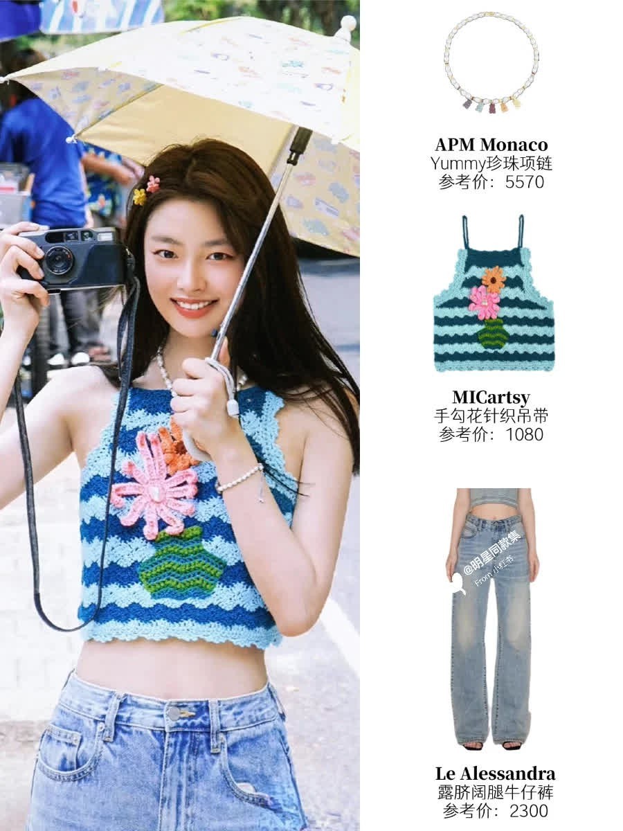 好喜欢徐若晗这身穿搭,格纹抹胸搭配休闲裤可爱又迷人