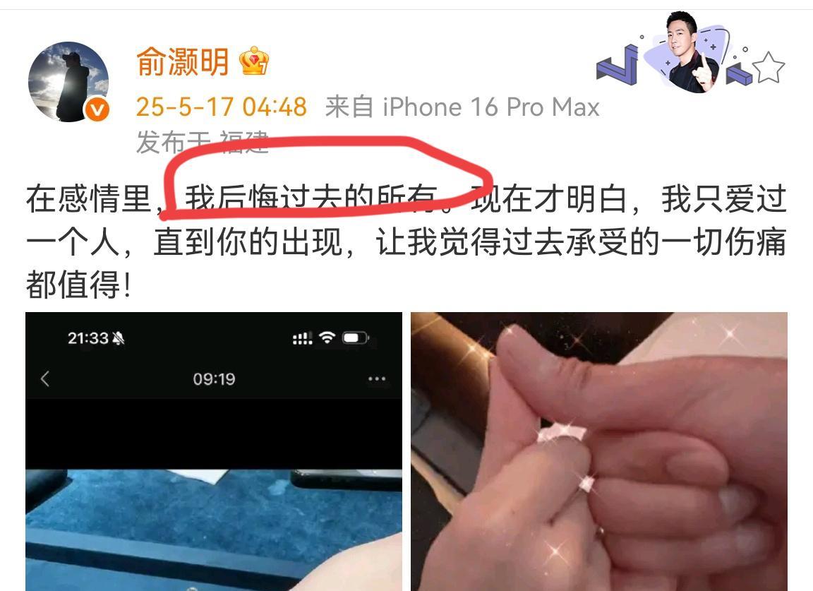 俞灏明官宣恋情 万万没想到他竟然在官宣文案里这么说 一句话得罪所有人 今日凌晨俞灏明官宣和女友的感情 本是一桩美好的喜事 却因为他的官宣文案让人想入非非 他在文中称“后悔过去的所有” 这一句就意味深长了 俞灏明今年37岁 感情史上并不是空白 在这次官宣之前,他可是还有一个交往长达4年的女友——王玥夕 虽然能理解人在碰到正缘时的坚定 但是也不用否定以前的所有感情经历吧 后悔过去的所有 真的很容易让人理解成过去的都不爱 这样说让前女友们情何以堪 官宣恋情表示祝福 就是表达的语句不太通顺 看来明星的语文水平也是参差不齐呀
