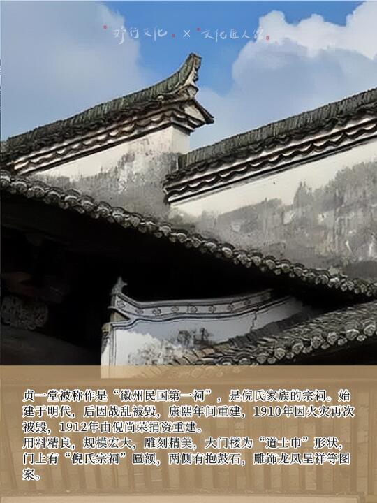 这次除了体验傩舞外,徽派明清古建筑也是一大亮点: [哇R] 1.贞一堂,徽州民国第一祠,省重点文物保护单位 2.唐大司徒郑公祠,省级文物保护单位 3.一府六县宅,清末徽派民居的防🔥设计典范 · 欢迎感兴趣的朋友加入我们一起收获精神食粮