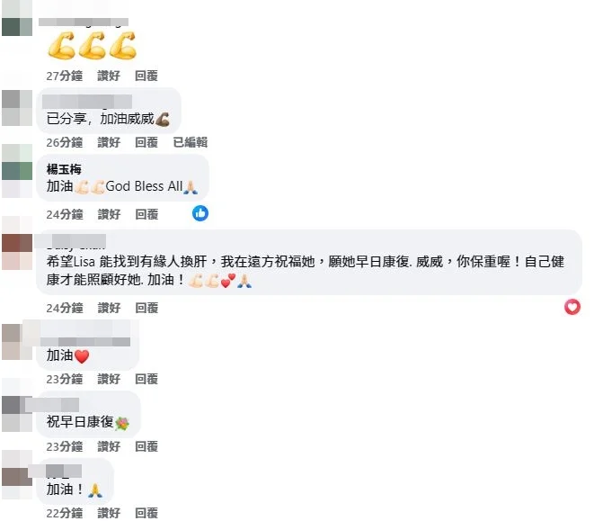 艾威太太陈美玲(Lisa)患有家族性遗传多囊肝及多囊肾,今年初病情恶化,艾威早前透过社交平台公开呼吁求热心人士活体捐肝,获十多名与Lisa血型吻合的善心人愿意捐肝。艾威接受传媒访问时再透露太太Lisa病况,指她日前因细菌感染入院,仍留医ICU(深切治疗部),未能进行移植手术。