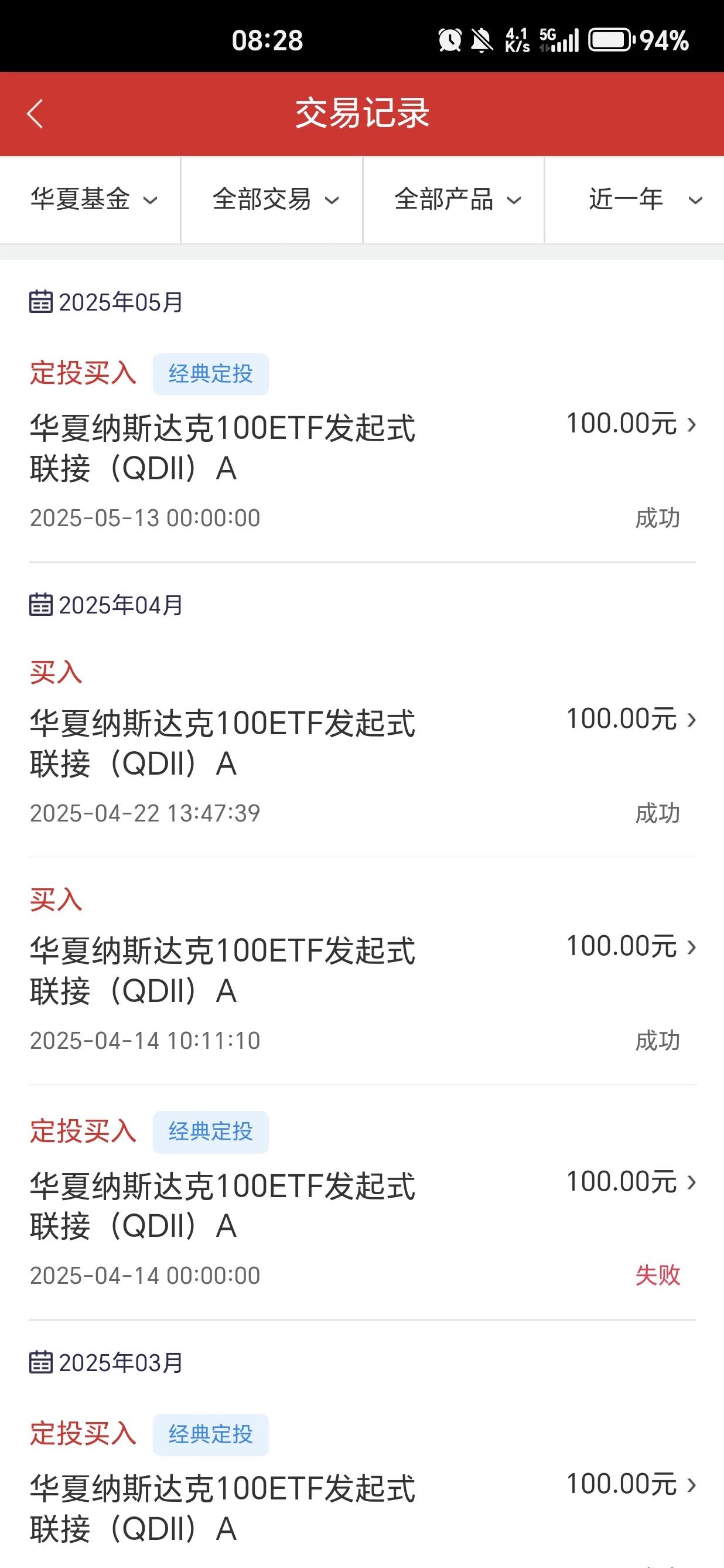 纳斯达克100指数基金投资投资的奥秘,掌握人类投资的奥秘,尊重人类大发展规律,客观面对人类未来。 暂停更新近2个月多的纳指基金定投文章还是决定恢复。为什么暂停更新主要是自私的考虑,我自己赚不赚钱和你有什么关系?我不告诉你我赚钱的方法,其实一点没有道德的谴责。我赚我认知的钱,我赚的开心,为什么要告诉你??? 最近多了好几本书,自己慢慢有所感悟,或许是心境不同了,或许没有那么自私了,也可能是想通过这个平台能认识更多和自己认知相同的人群,毕竟物以类居,人以群居,找到自己的群居群体。 向大家推荐《简单致富》和《持续买进》作用投资进本的入门宝典。 纳指基金定投没有暂停,定投持续买进,场内有钱就买。5月新增景顺纳斯达克100基金定投,和场内加仓15000的ETF。 操作原则,只买不卖。