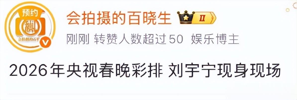 如果是真的,这将是刘宇宁第三次登上春晚的舞台。