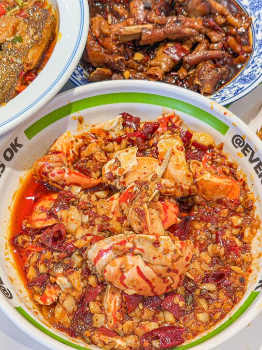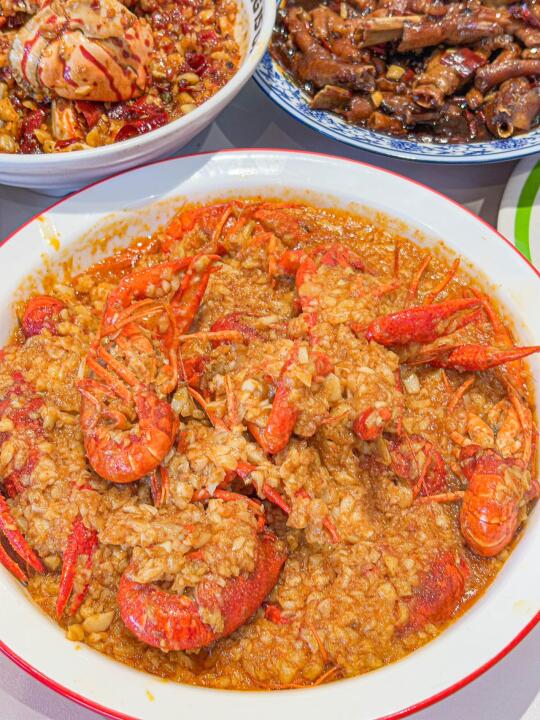 啊啊啊!!终于在景德镇终于也是也吃上了我心心念念的欧记了😭😭😭 怎么会有这么好吃的蟹脚,泰好吃了!!! 红通通一大碗超霸气!!蟹脚被满汤渗透的足足的,光闻味儿就馋到不行!轻轻一扯,饱满的蟹肉就脱壳而出,入口香辣鲜香直接在嘴里炸开,肉质紧实鲜嫩,越嚼越上瘾!!辣到嘶哈嘶哈也舍不得停筷子,最后还打包一份带回去了~ 还有鳕鱼尾、蒜蓉小龙虾、葱油小鲍鱼都yyds