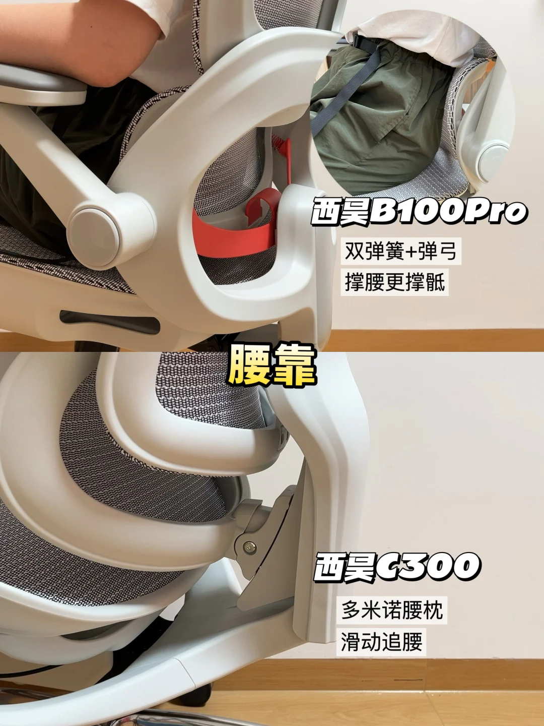 👉B100Pro虽是入门款,但腰枕却配了双弹簧设计(双倍弹力支撑+高回弹缓冲)+撑骶弹弓(固定撑骶)+仿生大撑面,分压+吸能+承压buff叠满!能够撑腰托骶保持好坐姿!腰部不悬空,日常办公也完全不累腰!