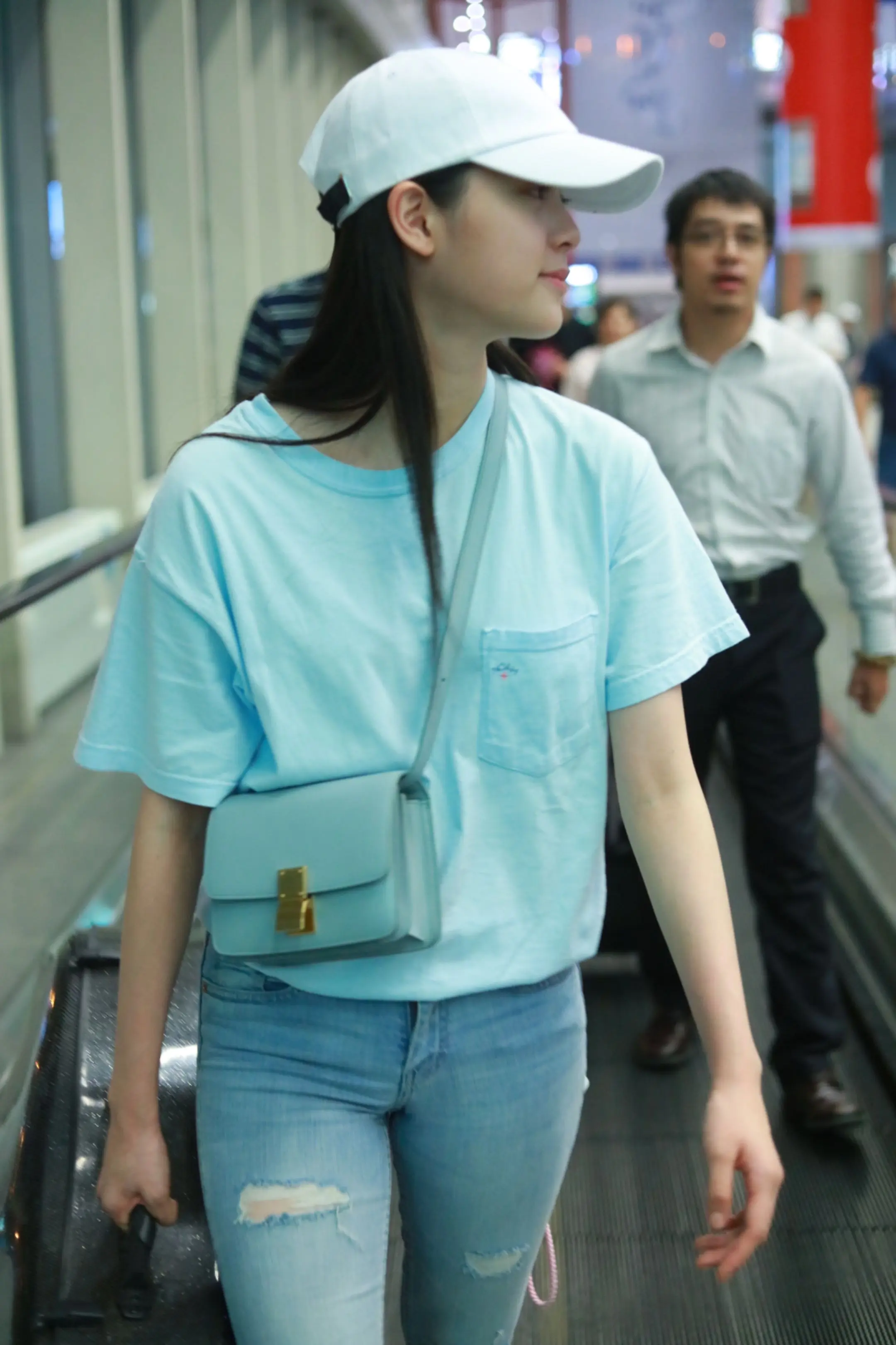 欧阳娜娜 机场偶遇,助理都没带,自己提大提琴