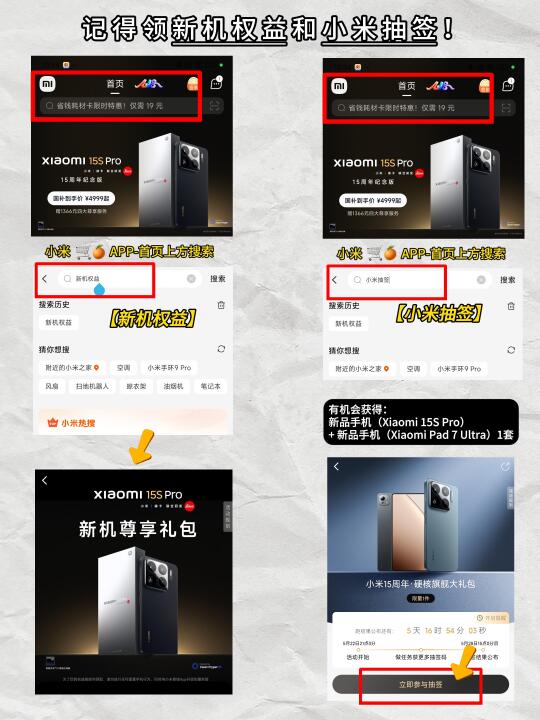 3⃣ 抽签必参与!小米🛒🍊首页搜【小米抽签】抽新品手机+平板套装(让我中!)