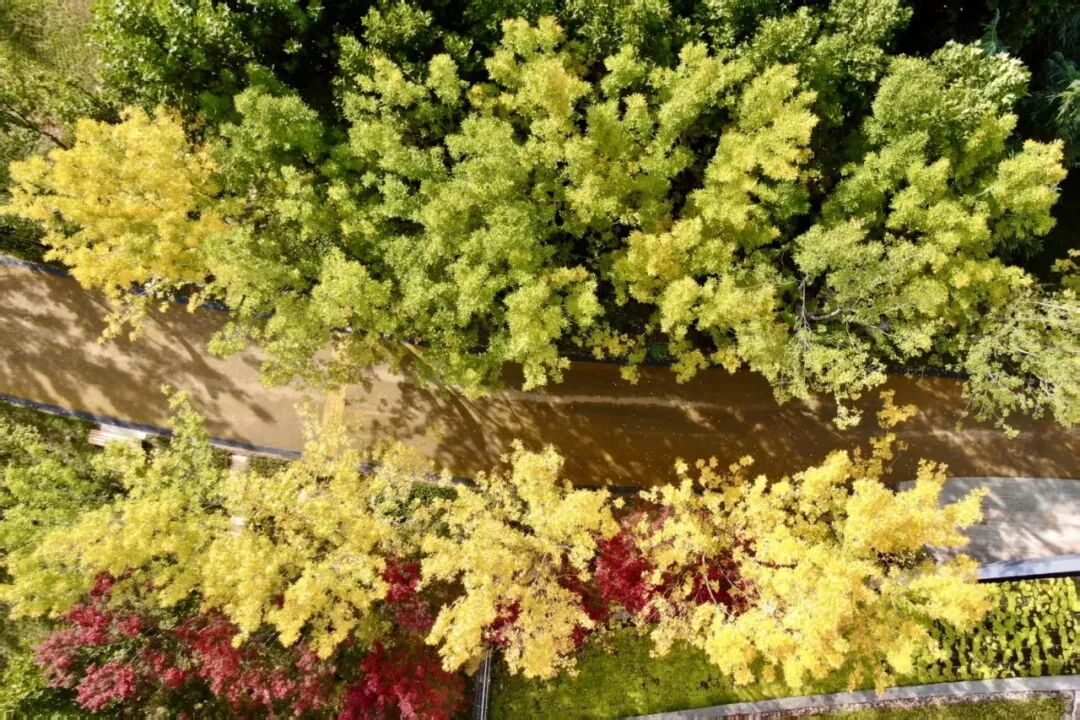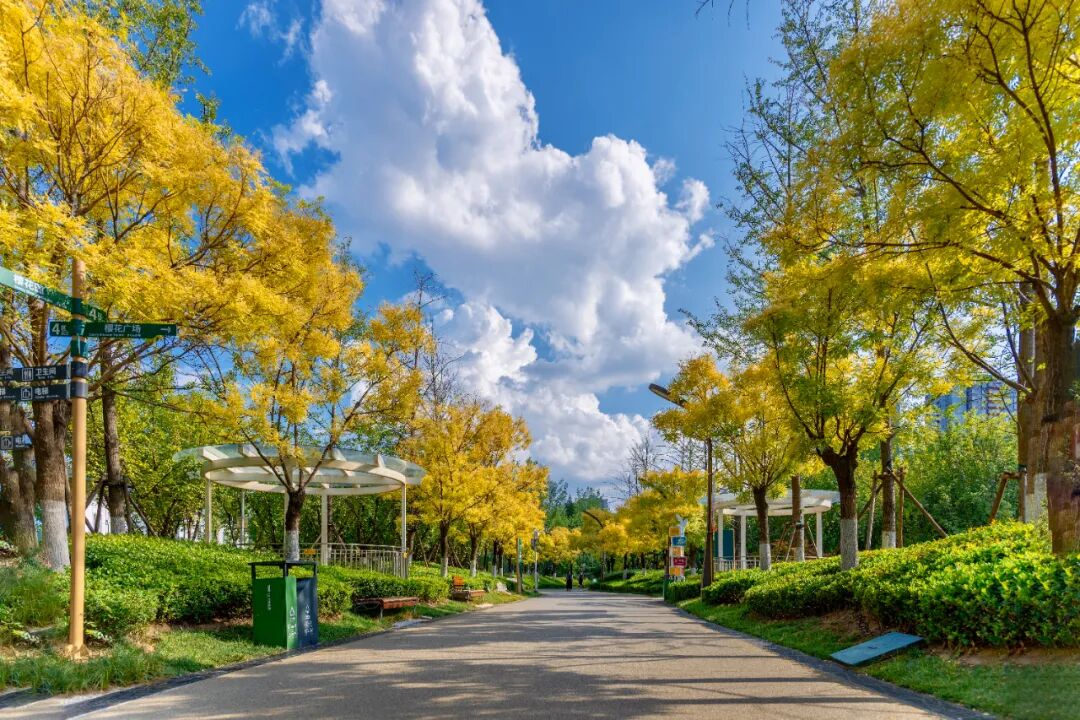 秋,绘就斑斓诗篇。幸福林带色彩最丰富的季节,枫叶逐日染上炽烈的红,银杏则泼洒出灿烂的金黄,橙黄橘绿,层林尽染,宛如打翻的调色盘。