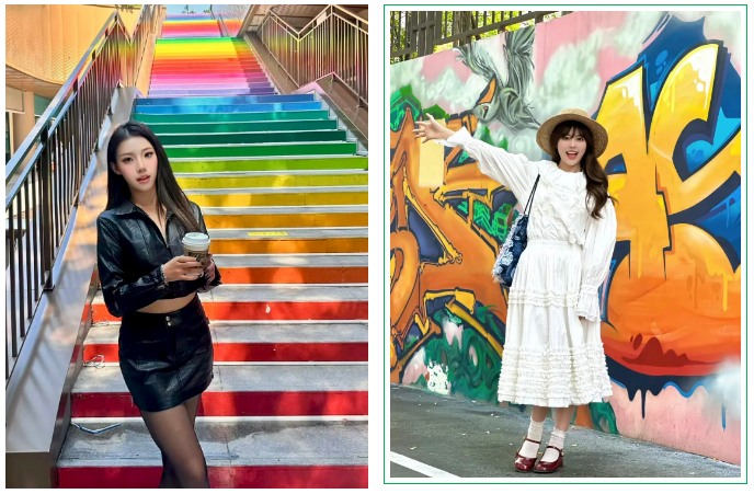近半年来,网红桥、涂鸦墙、彩虹楼梯、钢琴楼梯、MBTI主题打卡点、围炉煮茶、CASA艺术空间、中国国家地理展等一系列符合年轻人审美的美陈打卡点和艺术展也出现在各个主题广场。