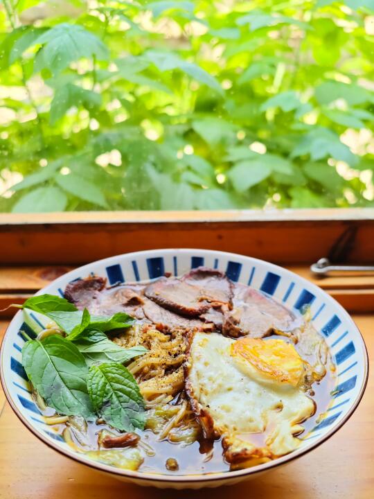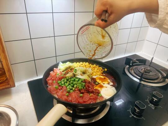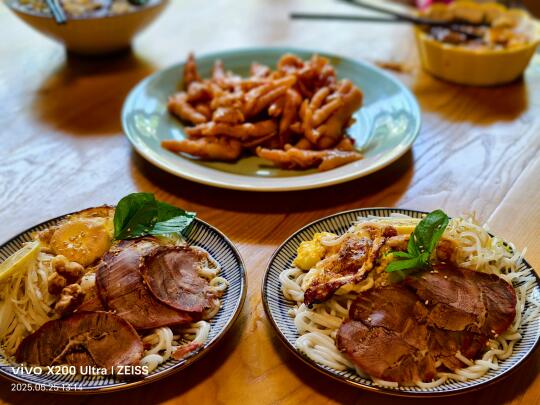 我做了凉拌牛肉米线 酸菜米线 还有给孩子们的牛肉汉堡 煲仔饭…