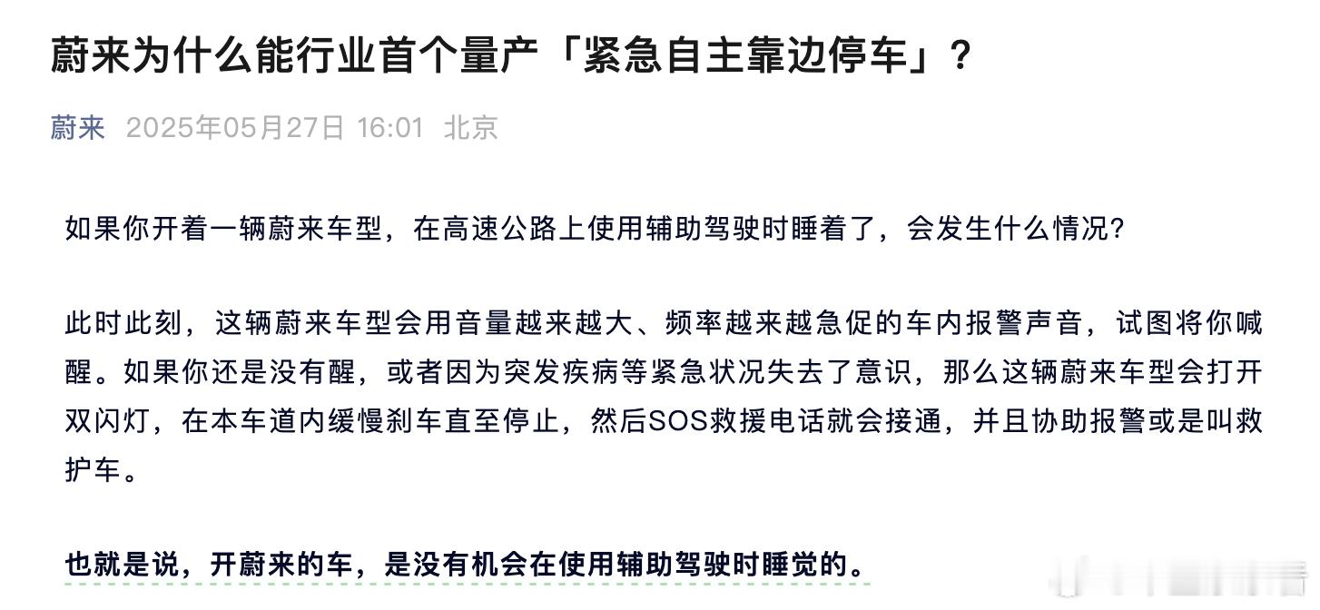 蔚来在博文里表示,使用他们的辅助驾驶系统时,驾驶员没有机会睡觉。