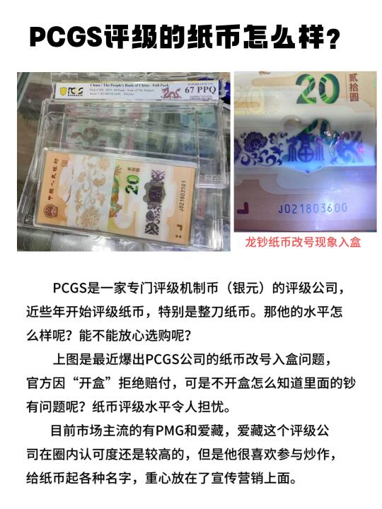 PCGS是一个老牌的评级机构,他擅长评级机制币,在银币圈内占有重要地位,但是纸币评级方面还是不足,口碑出现了问题。