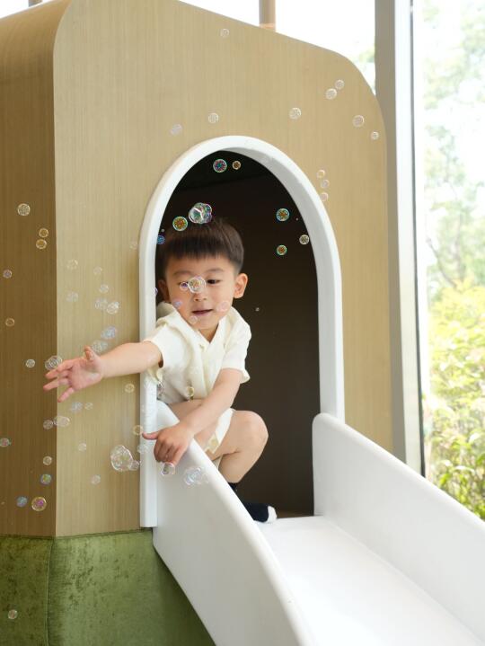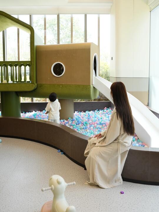 在公区散散步,我们来到了源趣儿童俱乐部, 马卡龙色系的室内乐园里,滑梯、海洋球池、乐高墙、绘本角一应俱全,儿子在里面呆了一下午,喊他走也不肯回!