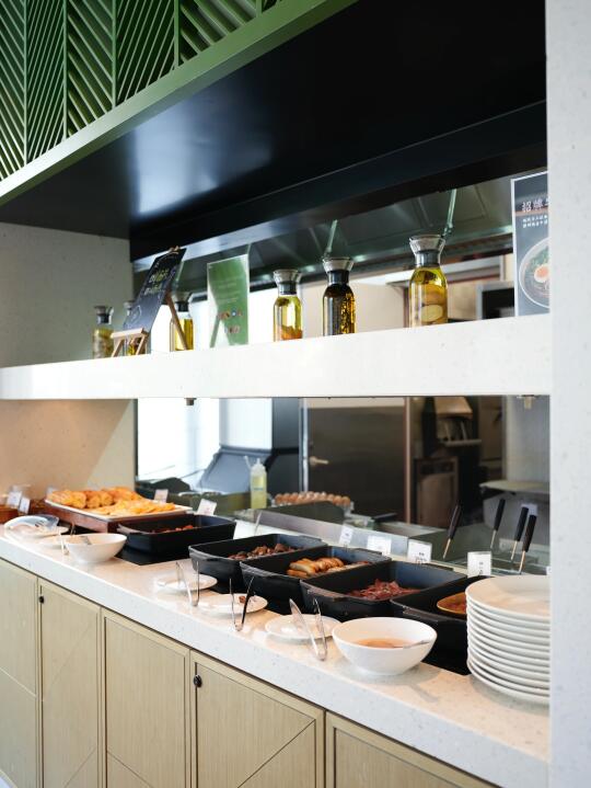 其实这里的燃全日制餐厅和韶舞中餐厅都隶属于青岛金茂万丽酒店,酒店与源宿同属一个酒店综合体,内部相互连通,几步路就能松抵达,十分方便。