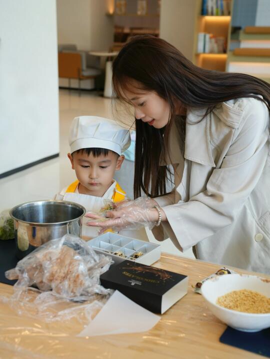 酒店每周还有cooking课程—— 戴小围裙、揉巧克力面团、用模具压出星星月亮,最后装进小礼盒带走。这种「边玩边学」的快乐,真的超有趣。