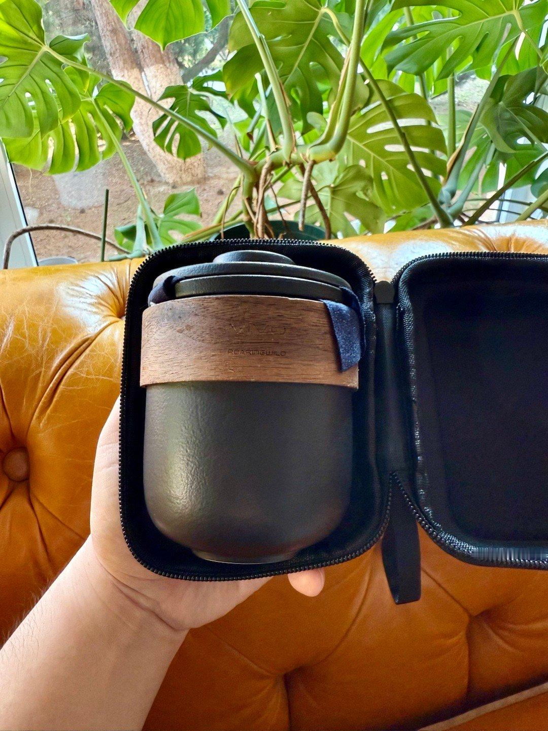 评论本博,抽一个vivo提供的便携式茶具套装,碳纤维质感外壳,茶壶+茶杯+滤网齐全。端午节给你包邮到家