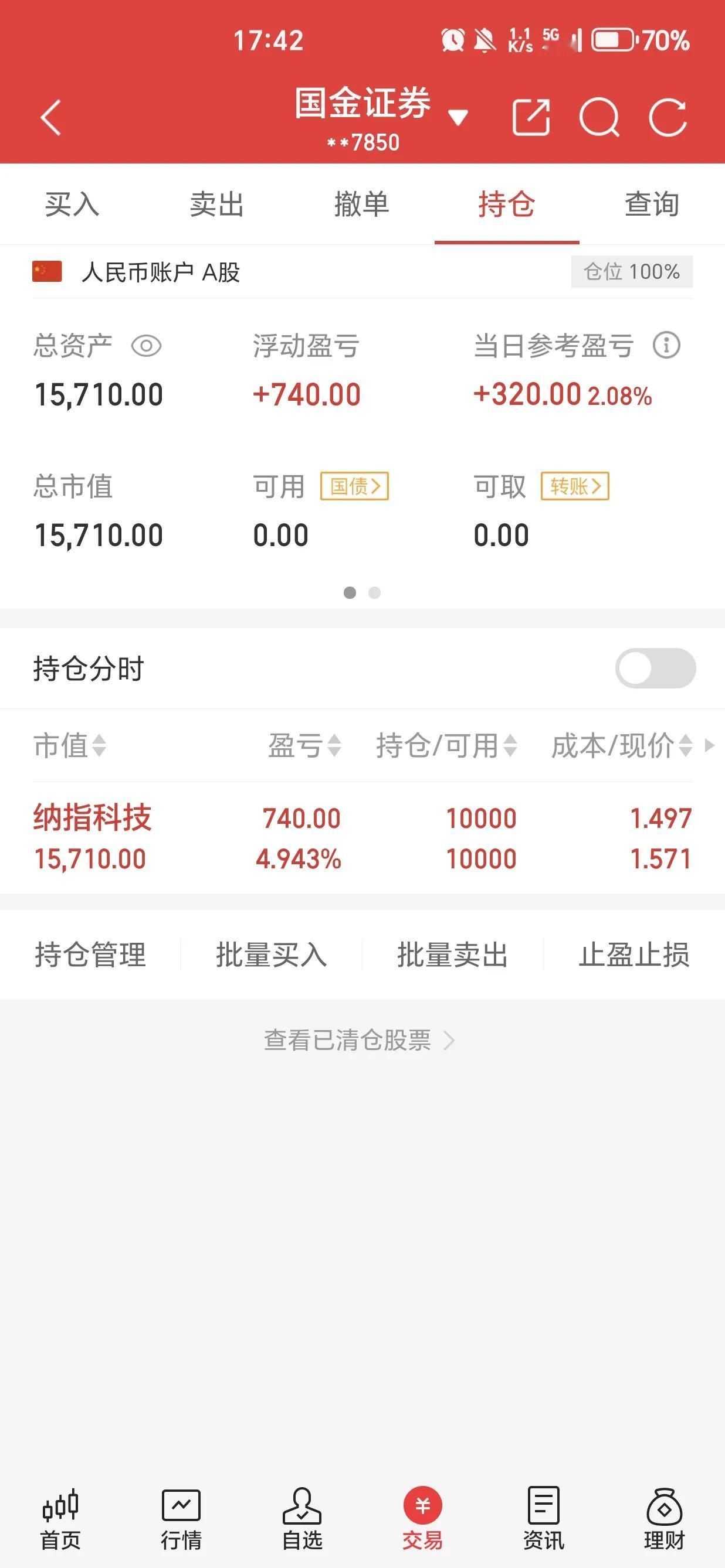 纳指基金今日受期货上涨影响,整体涨幅超过1%,平均在1.5%左右。上周我们加仓的场内纳指基金均获得收益,最后一次加仓的收益率接近5%。 对于纳指基金投资感兴趣的朋友可以长期关注我的实战经验,跟踪受益。