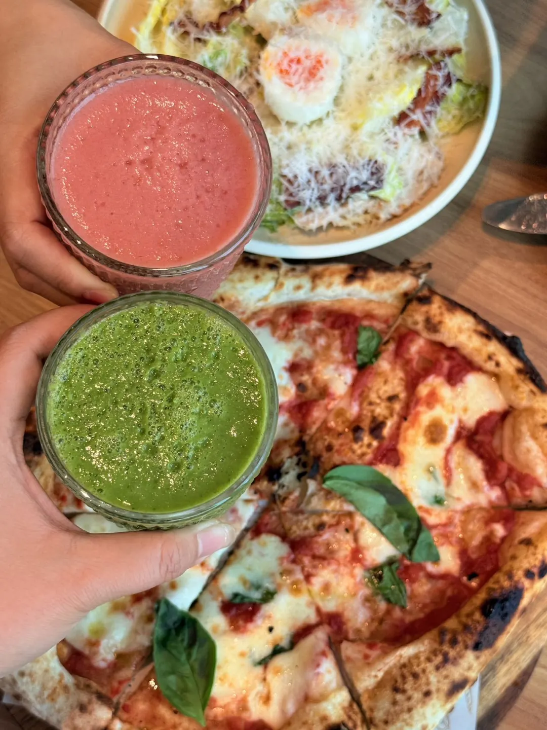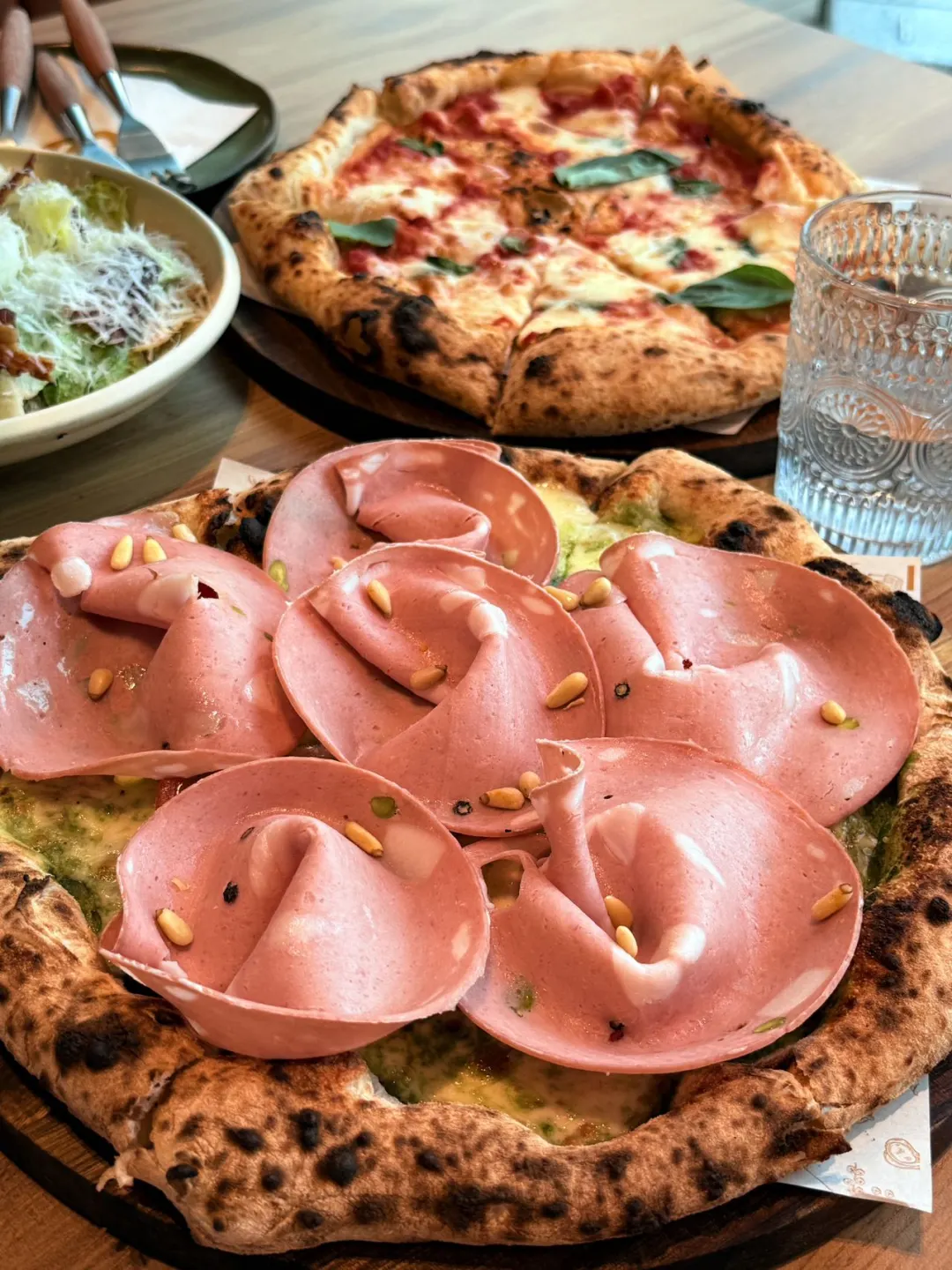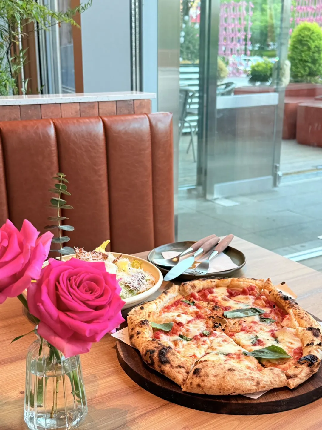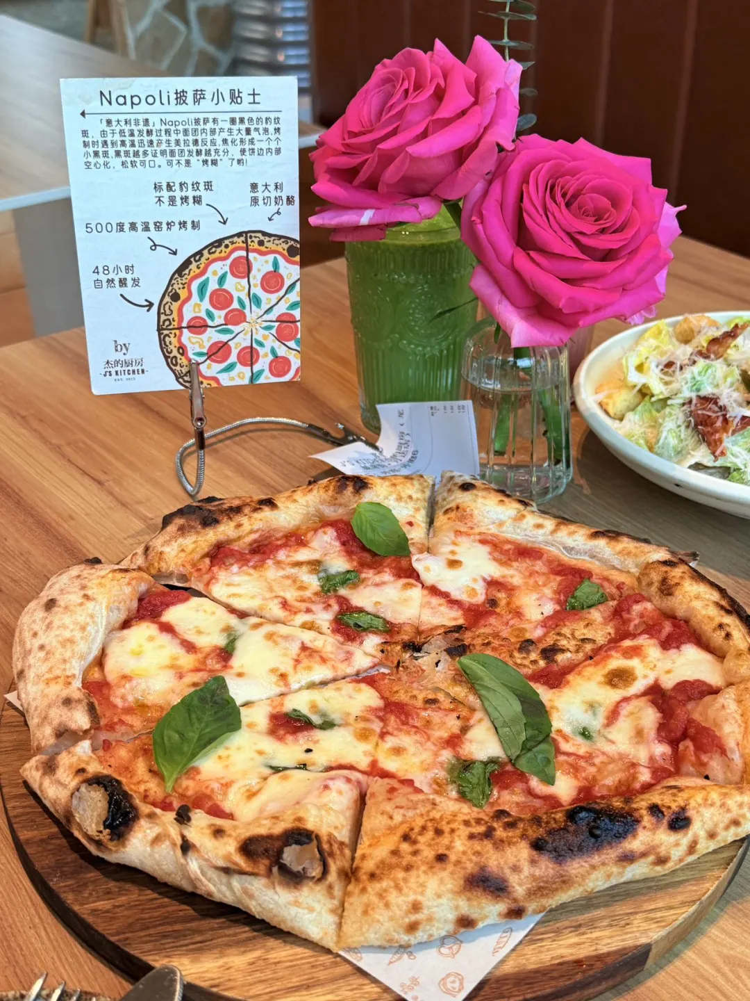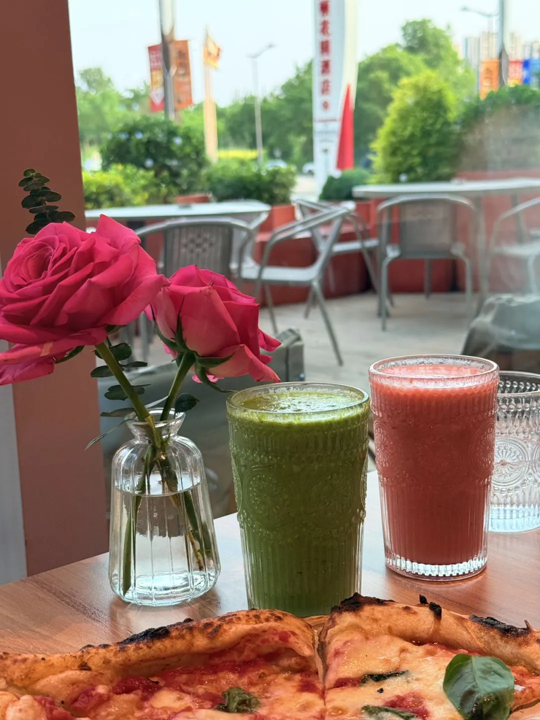 真的会想带每一个好朋友来吃的西餐店! 他们家的披萨就的超级正宗, 盲点也不会出差错! · 【玛格丽特披萨】 酸酸甜甜的口感,正宗的意式披萨, 面饼48小时自然醒发,味道更佳! 含有豹纹边,都是师傅们手工现烤的, 坚持自然手作原味的宗旨,真的非常好吃… 【罗勒松仁开心果大火腿披萨】 大片的火腿和花一样,真材实料! 罗勒,松仁,开心果, 大火腿披萨上面有松仁… · 食材新鲜,环境超级棒,绿植环绕很惬意! 约个姐妹!一起来吃漂亮店… ·