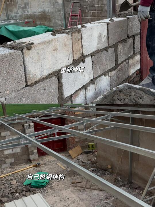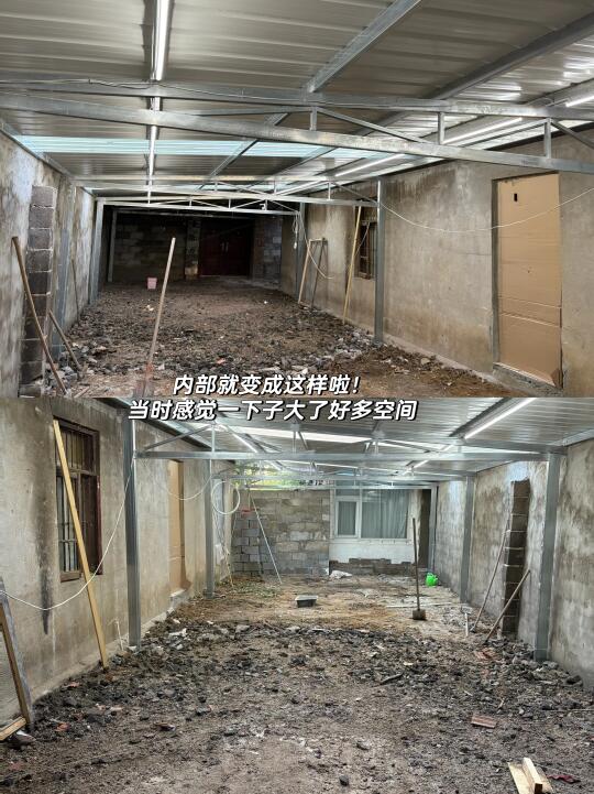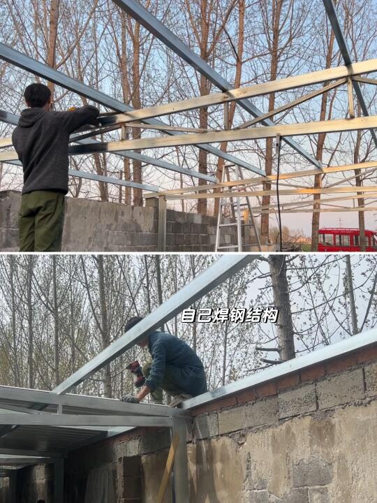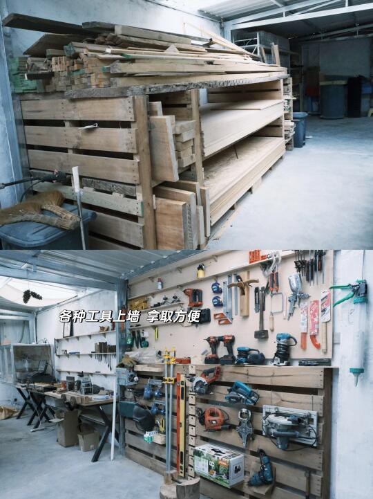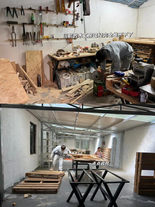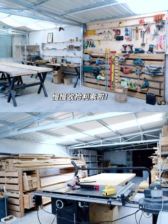自己收拾,自己电气焊盖钢结构,自己搭彩钢瓦,自己做木工。春天爸又一个人就是一个施工队。慢慢的实现了他要的工作间。