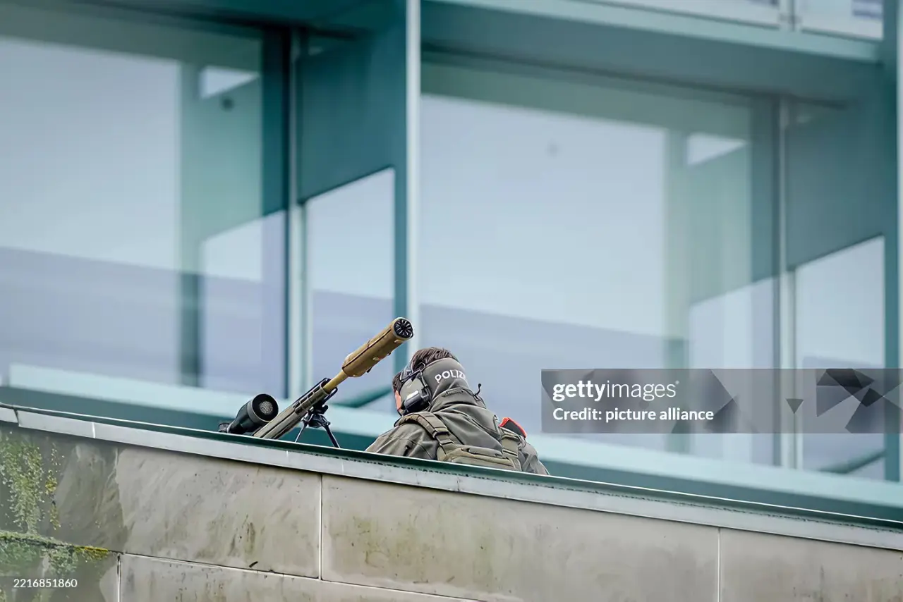 乌克兰总统泽连斯基访问柏林期间,德国SEK特警狙击手,在高层建筑物楼顶进行戒备