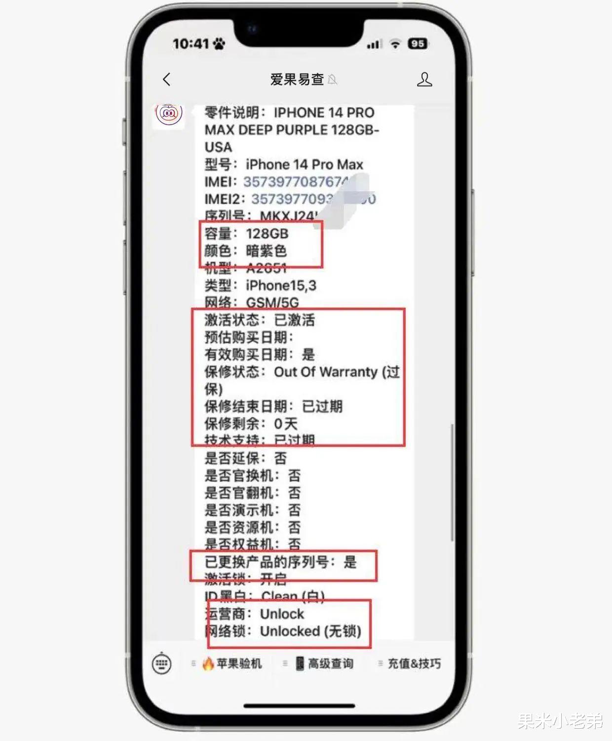 由于iPhone没有保修,那只有可能是拒保机、资源机、权益机、黑机等等。资源机虽然没有保修,但是有固定的激活日期。权益机是官机的备用机,激活后是过保,也是有固定激活日期的。黑机和拒保机则直接抹除了激活日期和保修日期,接下来我们看看网友查询的整机报告,看看该机的原始数据。