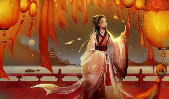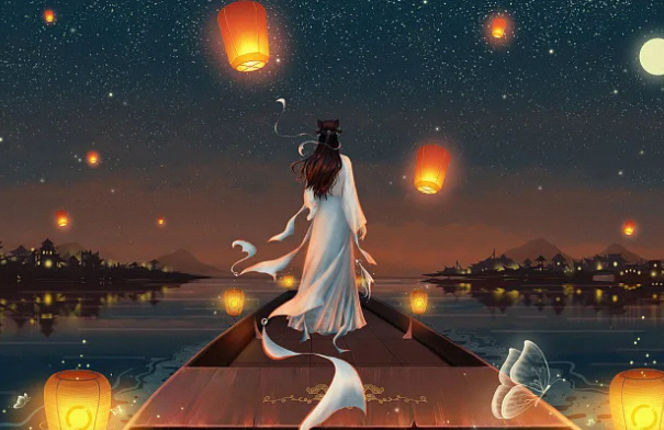 他说着提起一盏宫灯拉着我的手,向前走去。