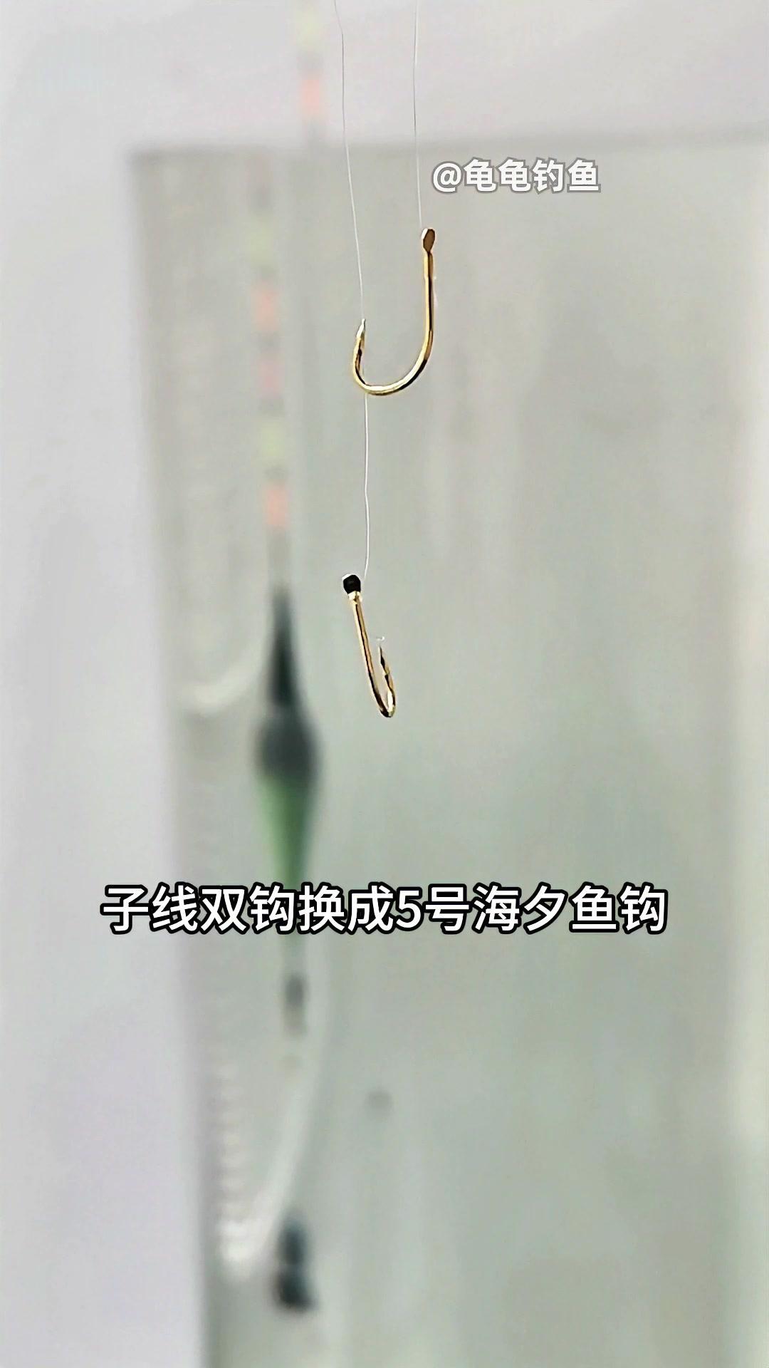 调三钓三,大鱼钩与小鱼钩,水下状态差别。🎣调三钓三,大鱼钩与小鱼钩的水下状态差别 1️⃣找底:鱼漂是吃铅量2.8克的咬钩变色夜光漂。 2️⃣修铅:反复修剪铅皮到浮漂露出水面三目。 3️⃣挂钩:挂上子线双钩,鱼钩为10号伊豆鱼钩。 4️⃣调目:设调目为3目,此时正式调三调三双钩。水下状态为双钩,塘底子线弯曲。 5️⃣换钩:子线双钩换成5号海夕鱼钩,现在正式调三钓三双钩,水下状态也是双钩,塘底子线弯曲。 🌟想不到吧,不带钩条3目钓3目,不管是大鱼钩小鱼钩双钩,水下状态居然是一样的。 钓鱼技巧调漂方